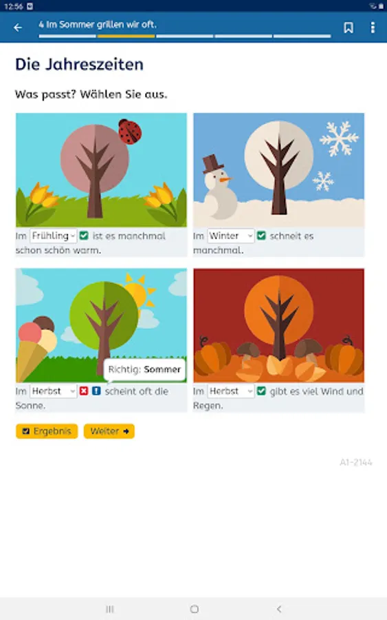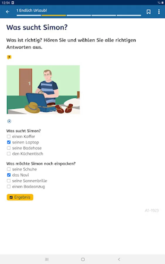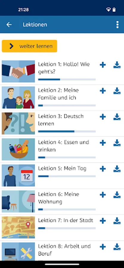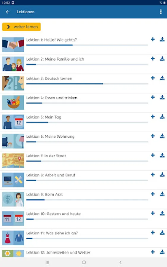 You can learn German for free at A1 level. A1 German (A1-Deutsch) is the mobile version of the mobile version of the A1 German Course (A1-Deutschkurs) at https://vhs-lernportal.de/deutsch. The app allows you to use all the functions of the A1 German Course offline on your smartphone.