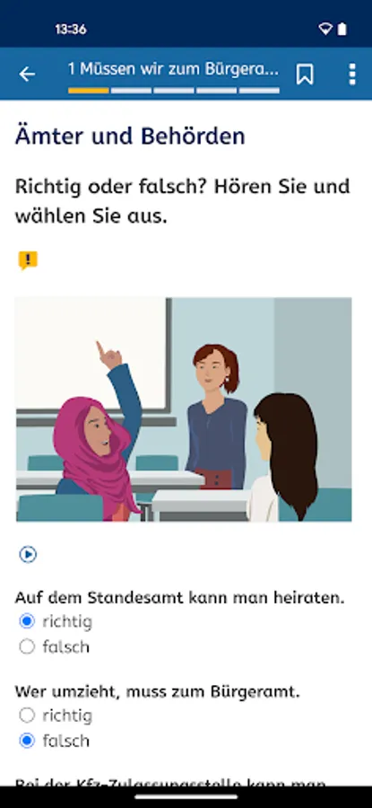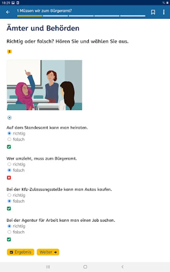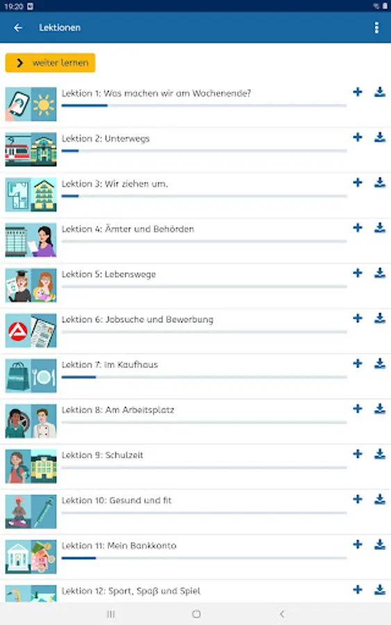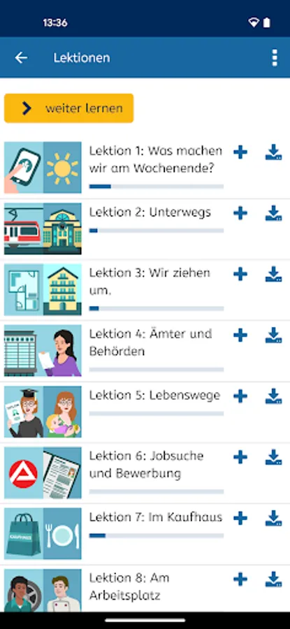 You will find our free German courses at levels A1, A2, B1 and B2 at https://vhs-lernportal.de You can use them with any standard web browser, regardless of the device. The German courses build up your linguistic abilities systematically. Regular tests help you keep track of your progress.