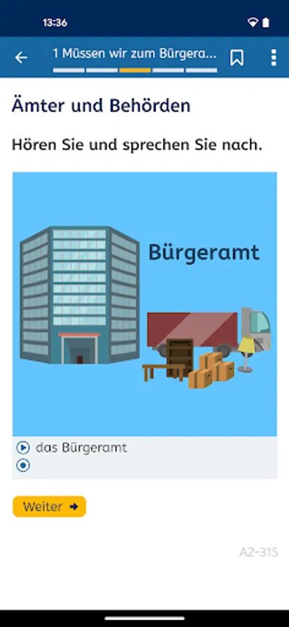 You can learn German for free at A2 level. A2 German (A2-Deutsch) is the mobile version of the mobile version of the A2 German Course (A2-Deutschkurs) at https://vhs-lernportal.de. The app allows you to use all the functions of the A2 German Course offline on your smartphone.