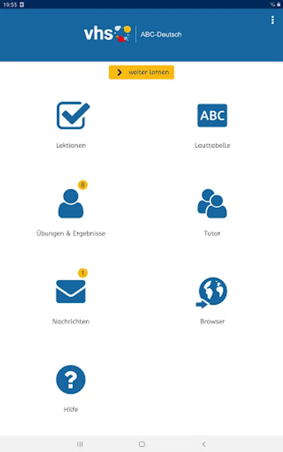 Learn basic German and the Latin writing system free of charge. ABC German (ABC-Deutsch) is the mobile version of the ABC German Course (ABC-Deutschkurs) on https://vhs-lernportal.de. The app allows you to also use all the functions of the ABC German Course offline on your smartphone.