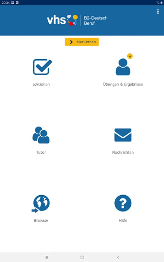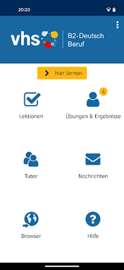 You will find our free German courses at levels A1, A2, B1 and B2 at https://vhs-lernportal.de/deutsch You can use them with any standard web browser, regardless of the device. The German courses build up your linguistic abilities systematically. Regular tests help you keep track of your progress.