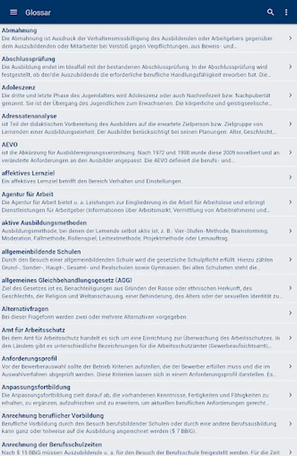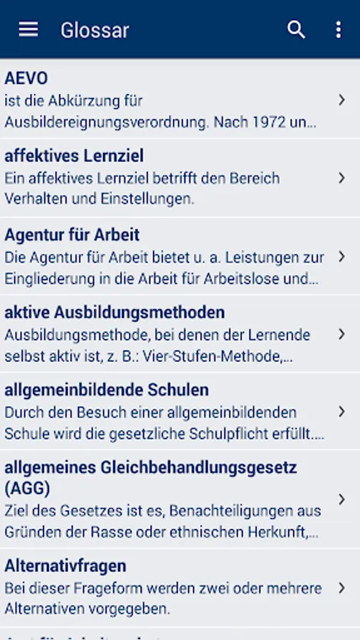 With more than 600 tasks, you can test and train your knowledge of the training of trainers (AEVO) online or offline. The alphabetical glossary supports you in deepening your knowledge.