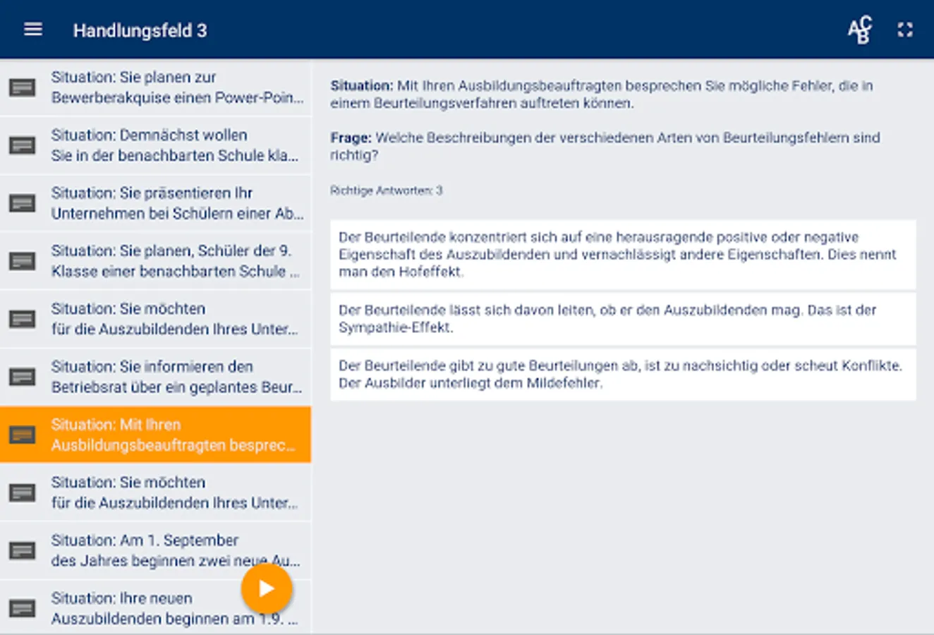 The tasks do not reflect the structure of the exam, which you can view on the DIHK-Bildungs-gGmbh website. The focus of the tasks in the app is to map the content of the framework plan as comprehensively as possible so that you gain confidence in dealing with the fields of action.