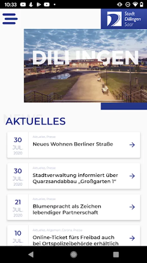 The city of Dillingen / Saar is cosmopolitan, transparent and close to the citizen. Our app provides current information about the city administration and the citizen service. You can also discover the cultural, sporting and social diversity of the hut town in the country