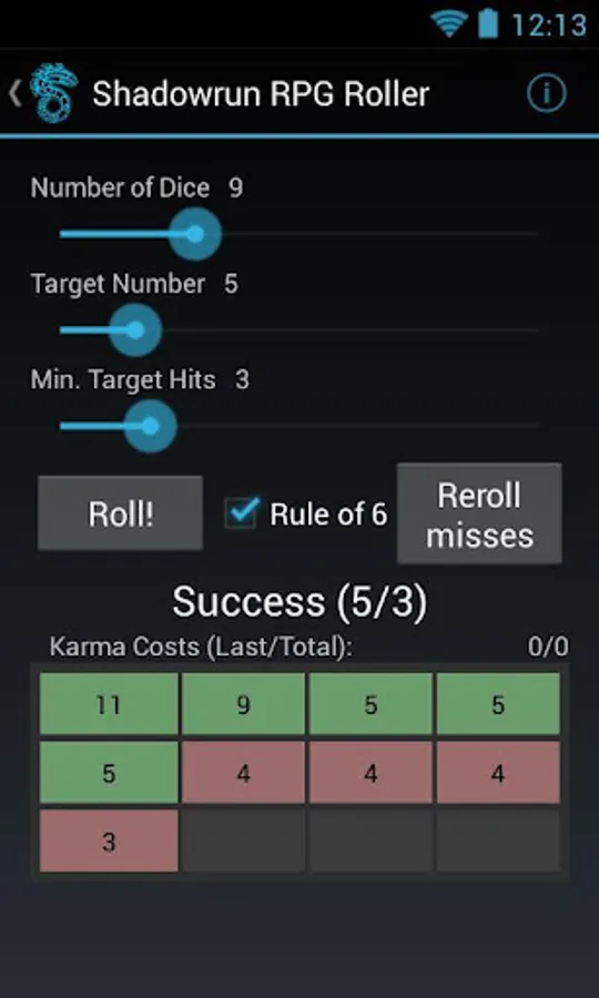 The Shadowrun-module keeps track of karma spent during re-rolls (currently, Shadowrun Edition 3 is supported, later editions will be supported at a later time)