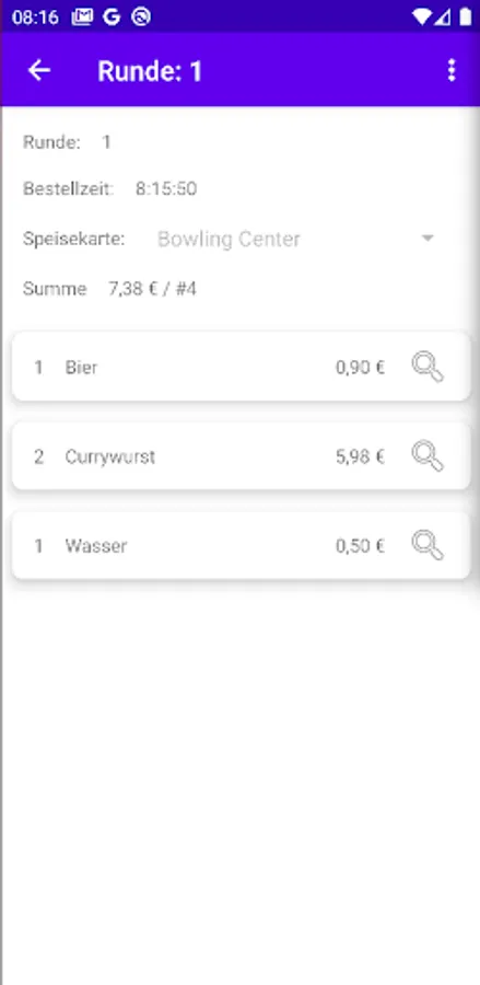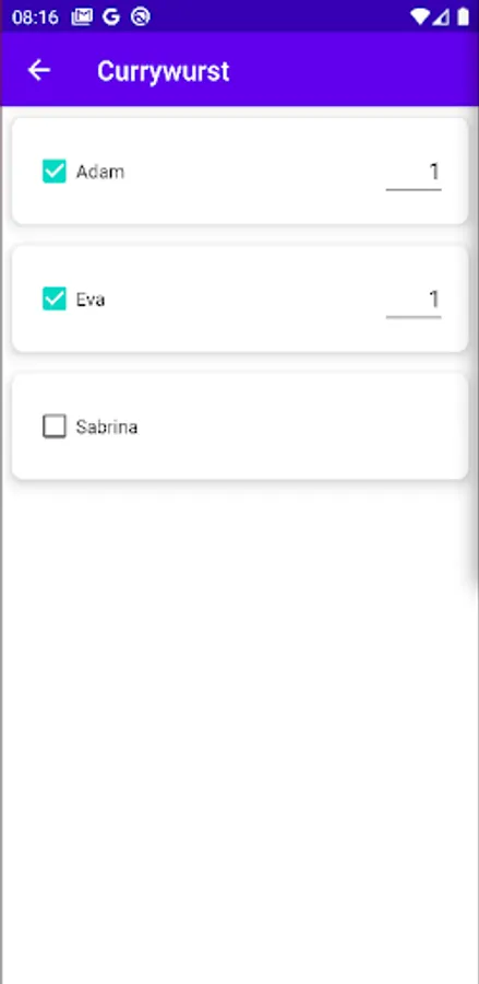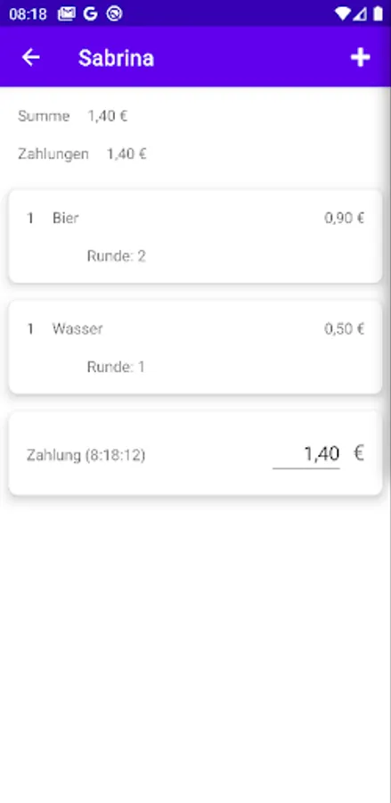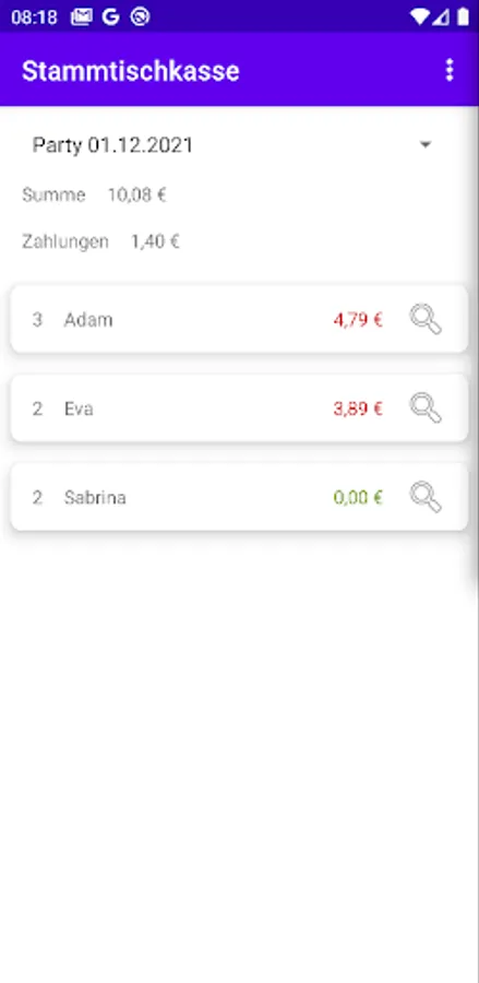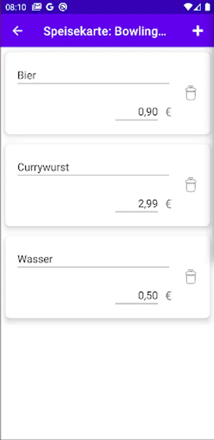 Here you can record all food and drinks for each person in great detail and the required individual and total sums are determined automatically.