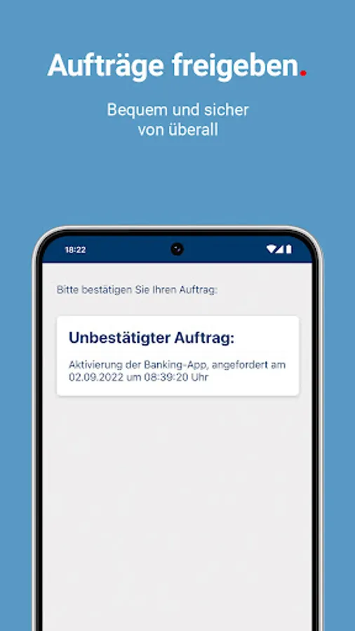 If an online transaction is waiting for approval, you will receive a push message on your smartphone via the 1822TAN+ app. You can then confirm or cancel the order in the 1822TAN+ app.