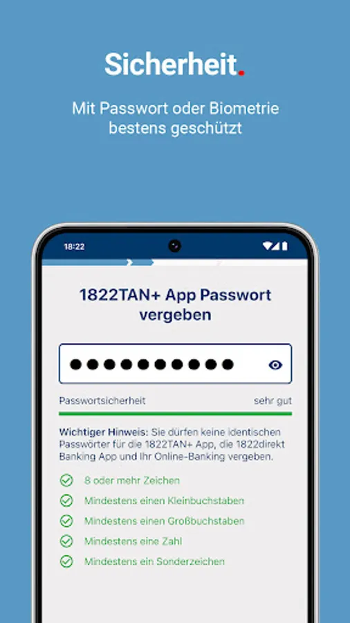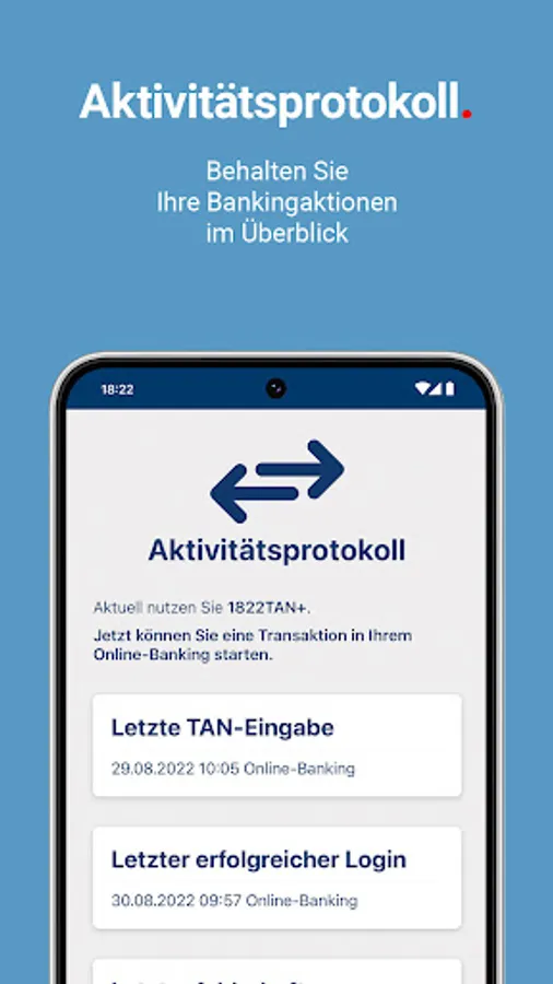 ✔ Carrying out transactions on a device (in combination with the 1822direkt banking app)
