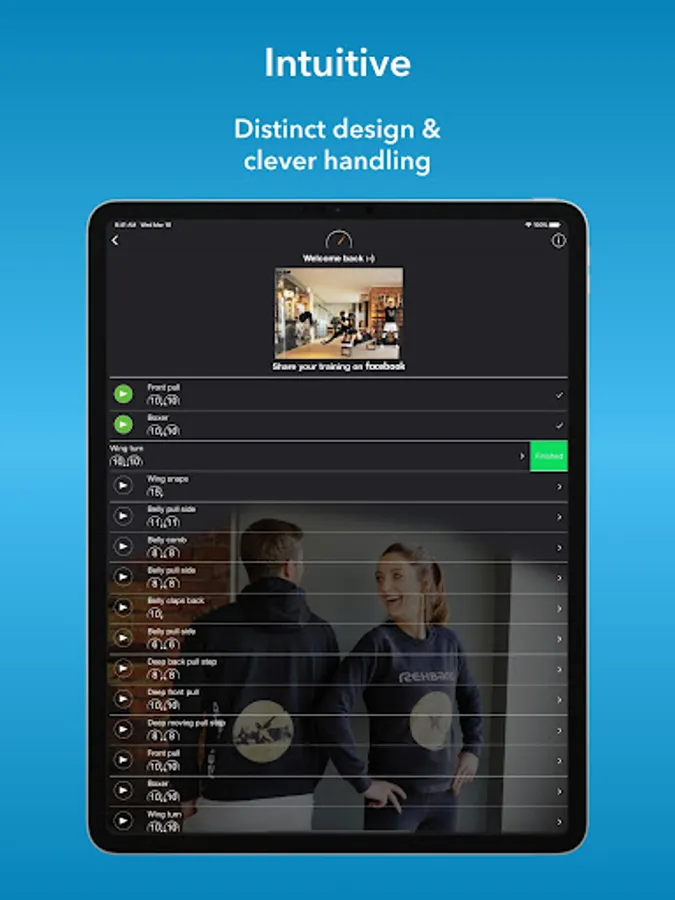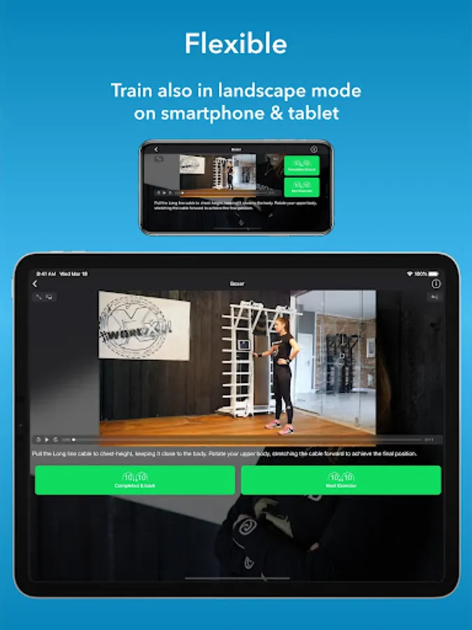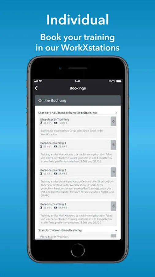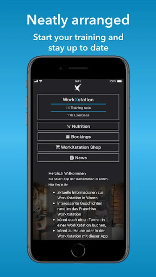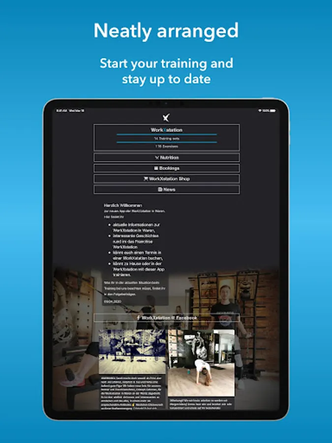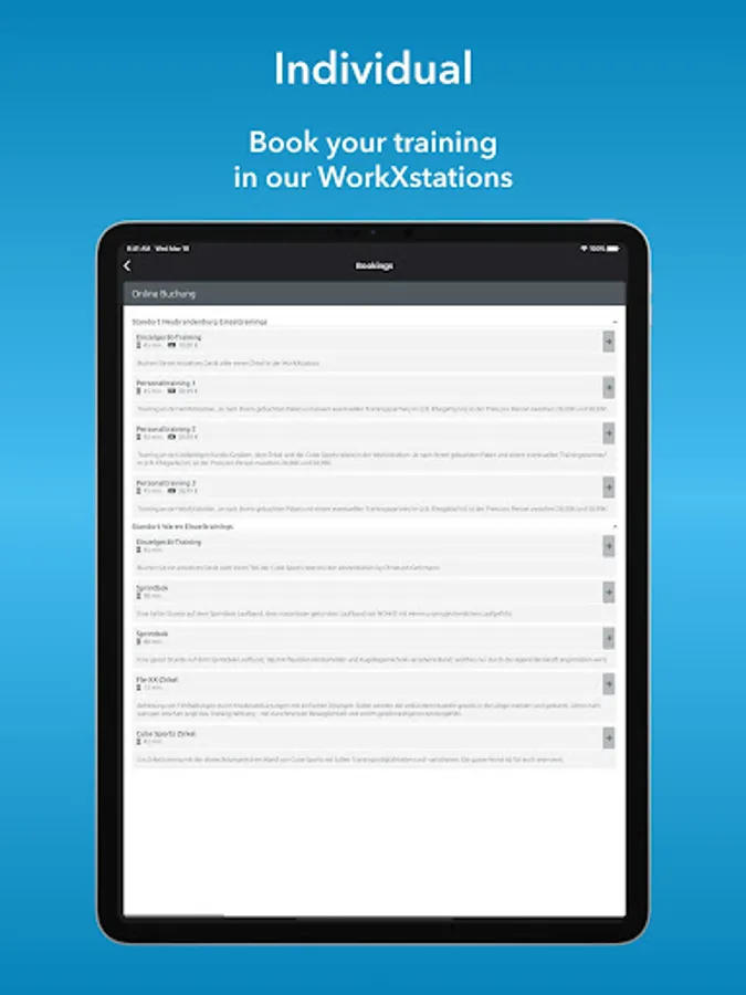 With this app you can train in one of our WorkXstations or at home. The next training session can also be booked in any WorkXstation.