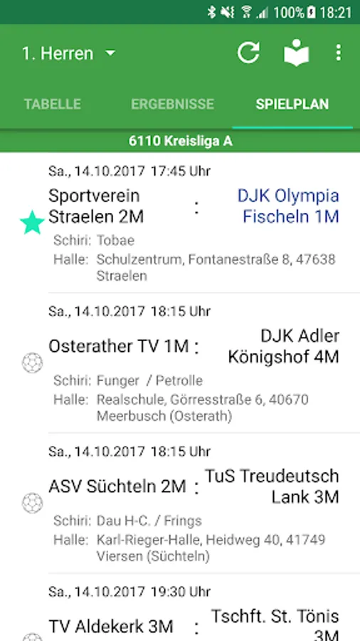 - Home Calendar to display the next home games all DJK Olympic teams Fischeln