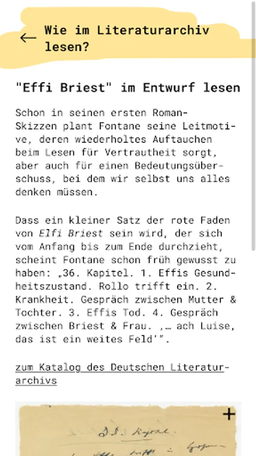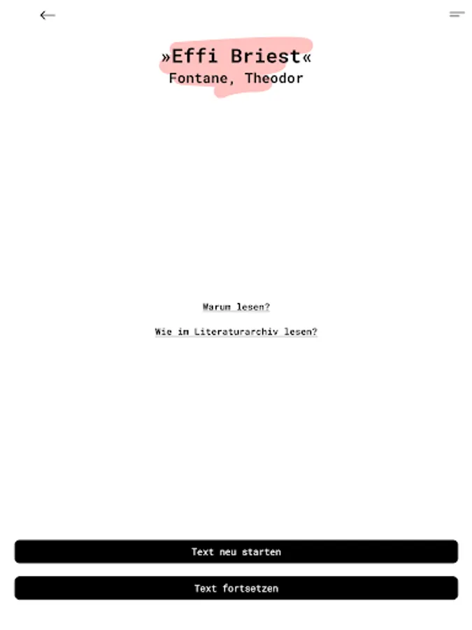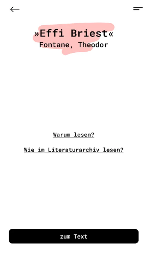 reading literature is part of the project “Reading literature digitally. Research in Action ". The app, developed jointly by the German Literature Archive Marbach and the Leibniz Institute for Knowledge Media Tübingen, enables new perspectives on questions of analogue and digital reading, the aesthetic effect of literature and the promotion of reading.