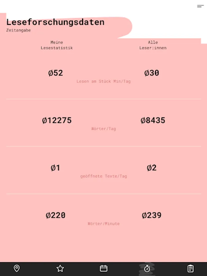 With the reading research app literaturlesen, the reading of literary texts can be examined in a natural environment and over a longer period of time. In the 'real laboratory' of the app, interactions between readers and the text are recorded (such as where we start to read, in which moods we read and when we mark something) and the data is saved anonymously. This creates a large and representative data set on our reading behavior that we can evaluate using statistical analyzes.