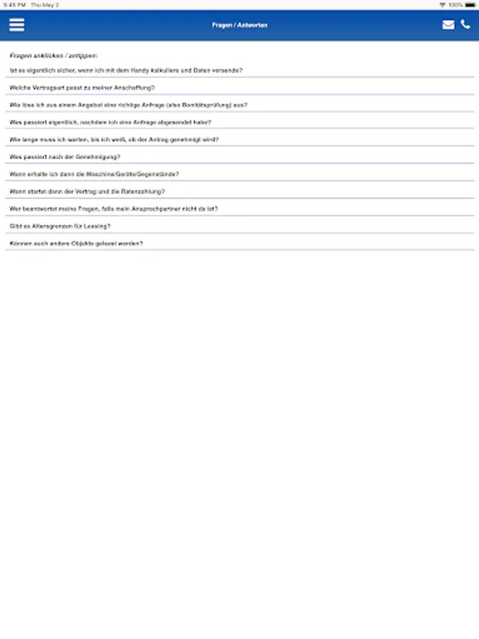 With Leasing2Go, you always have your leasing solution with you and can respond to every need. Current prices and contact persons are immediately available, with
