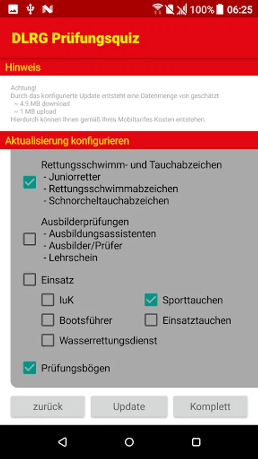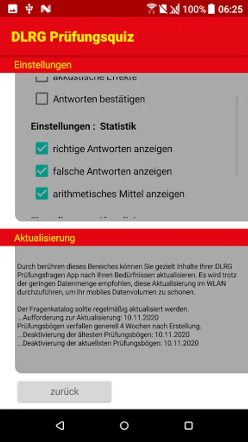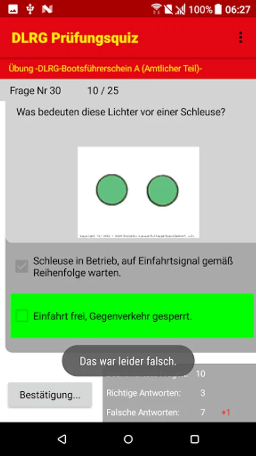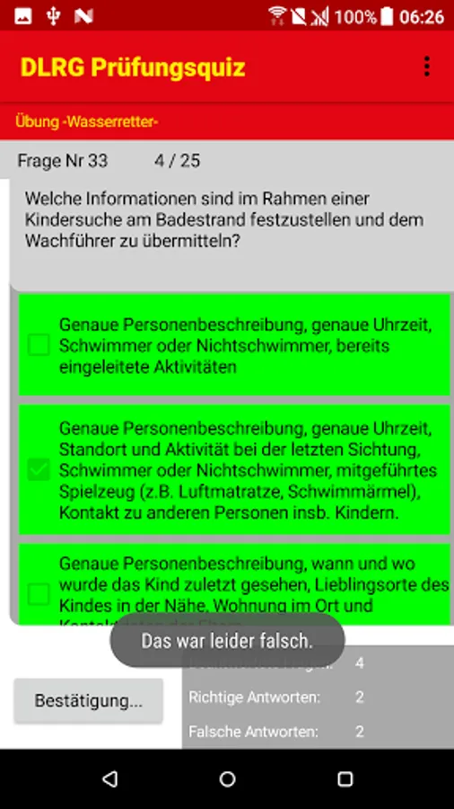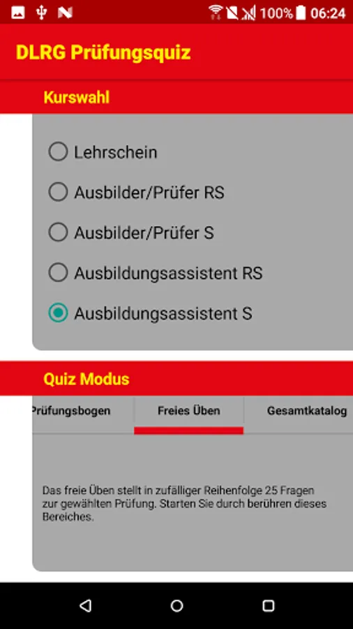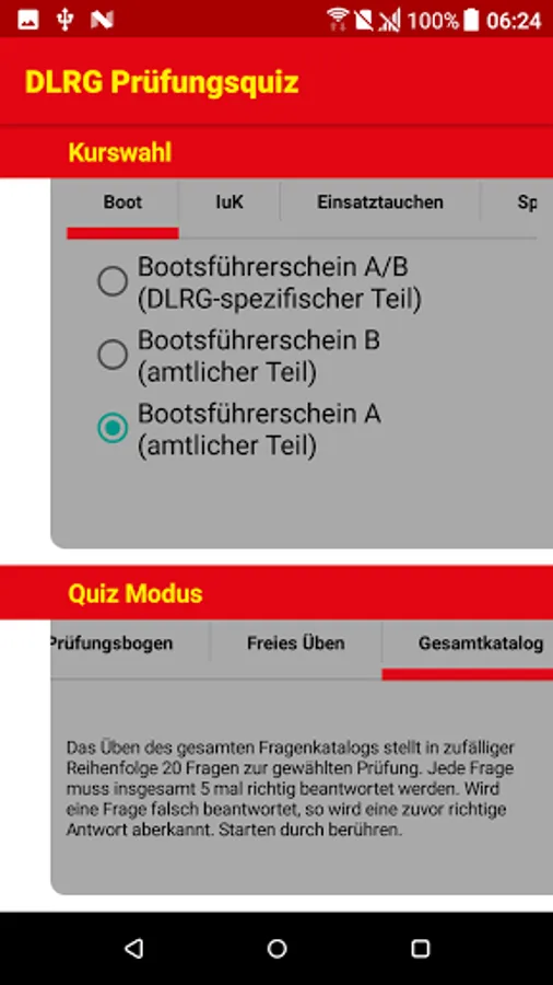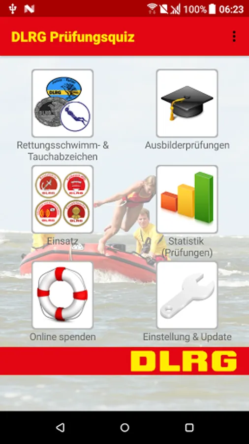 The DLRG exam quiz gives you the opportunity to test your existing knowledge with the current catalog of questions in preparation for the theoretical DLRG exams. In addition, training statistics can be created that visualize learning progress.