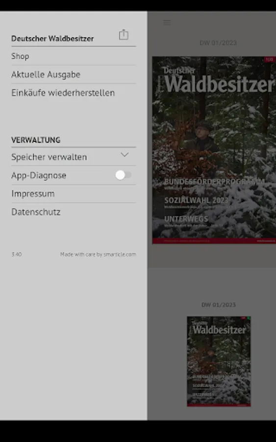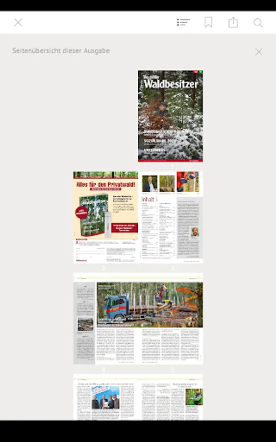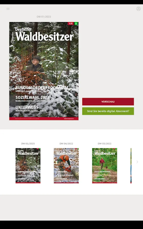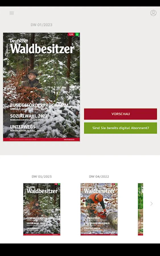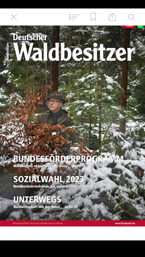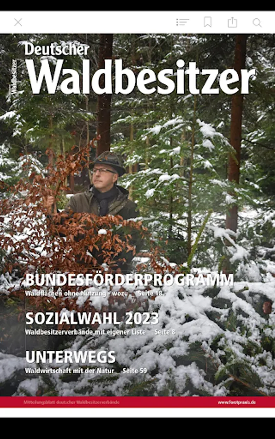 With this app you can read the German forest owner anytime and anywhere on your tablet or smartphone. It contains all pages of the magazine in the same format as in the printed edition.