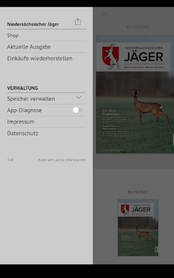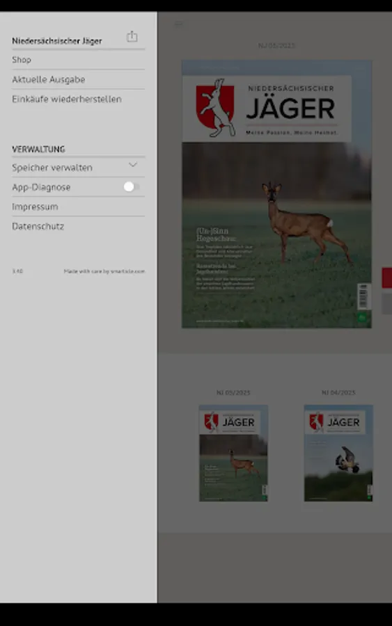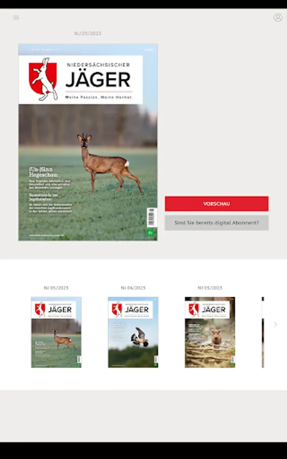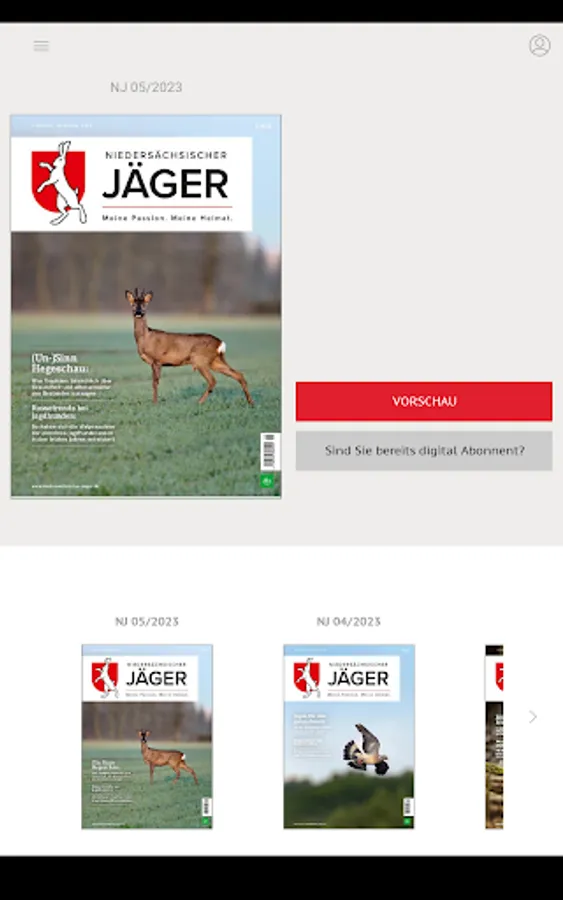 With this app you can read the Lower Saxony Hunters anytime, anywhere on your tablet or smartphone. It contains all pages of the magazine in the same format as in the printed edition.