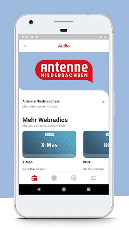 Experience the musical diversity of our web radios. In addition to the live program of Lower Saxony antenna can choose from many different styles of music your favorite program. The most important news and stories from Lower Saxony up to date. Given the weather and traffic reports from your region at a glance. Looks our presenters via webcam over his shoulder, listening to current podcasts and let you wake up to Niedersachsen antenna.