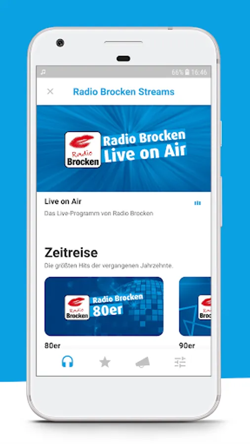 Immerse yourself in the music world of Radio Brocken and get the official app for your mobile phone here! Radio Brocken plays you the best music for Saxony-Anhalt! Hits from today and the best from the past decades! Discover the other channels and listen to Radio Brocken 80s or 90s hits around the clock on a dedicated channel. Let yourself be lulled to sleep with a sleep timer on your personal Radio Brocken Lieblingschannel.