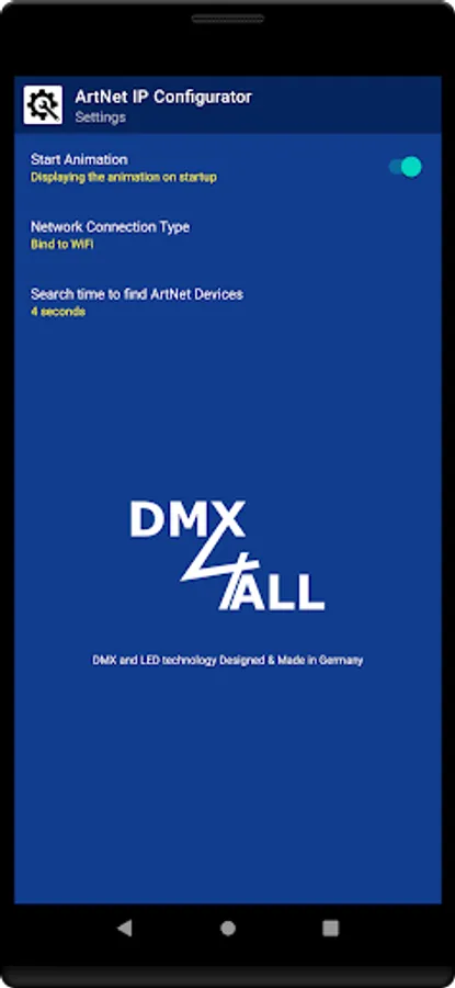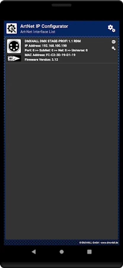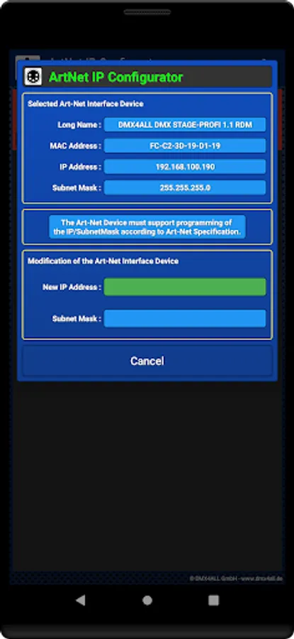 This is also possible if the network setting of the smartphone / tablet is not in the IP range of the Art-Net interface.
