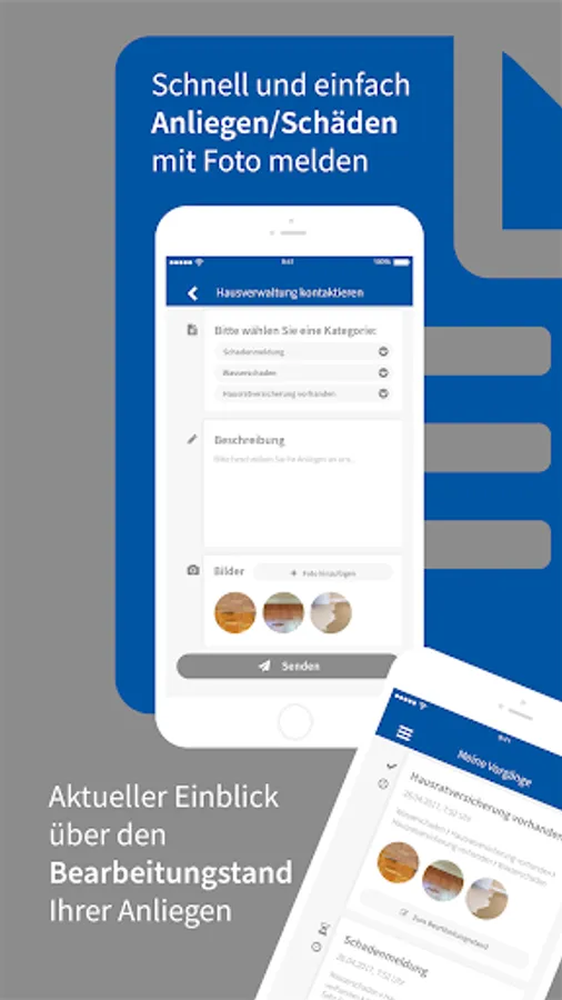 As a tenant or owner, you can report damage or concerns directly with photos via our app. Your inquiries are then available to our employees and can also be forwarded to craft businesses.