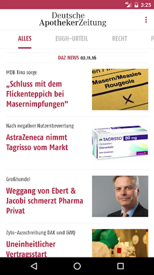 - All items from Deutsche Apotheker Zeitung (DAZ) and Apotheker Zeitung (AZ) - already before the print editions (for subscribers)