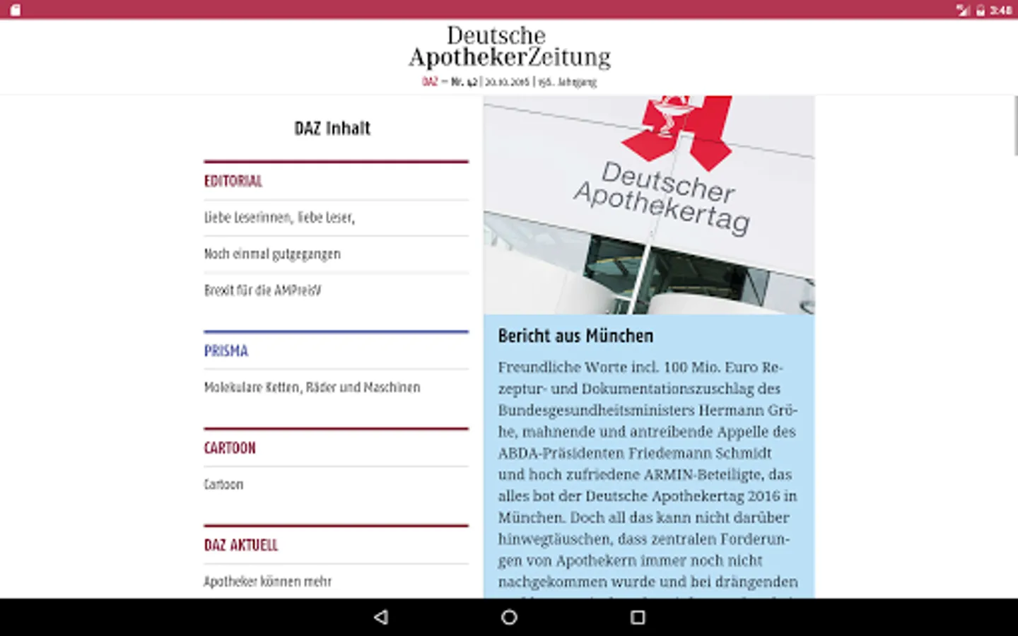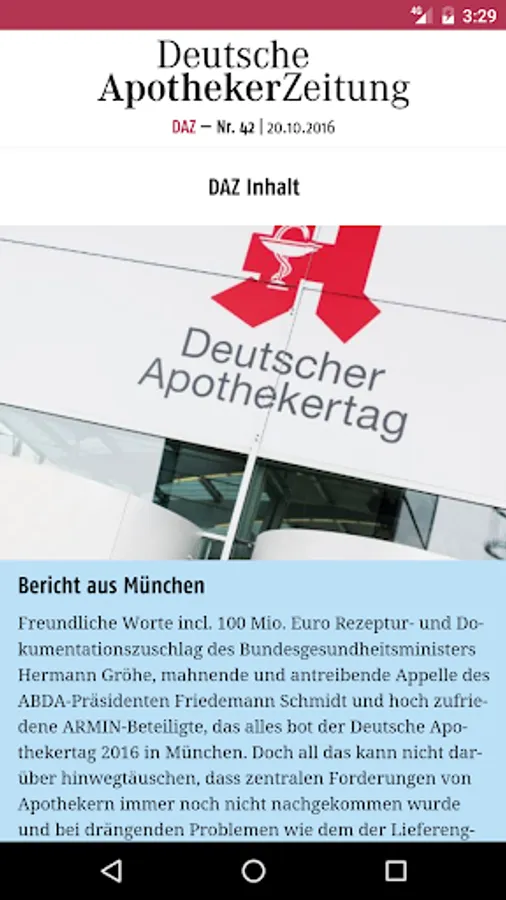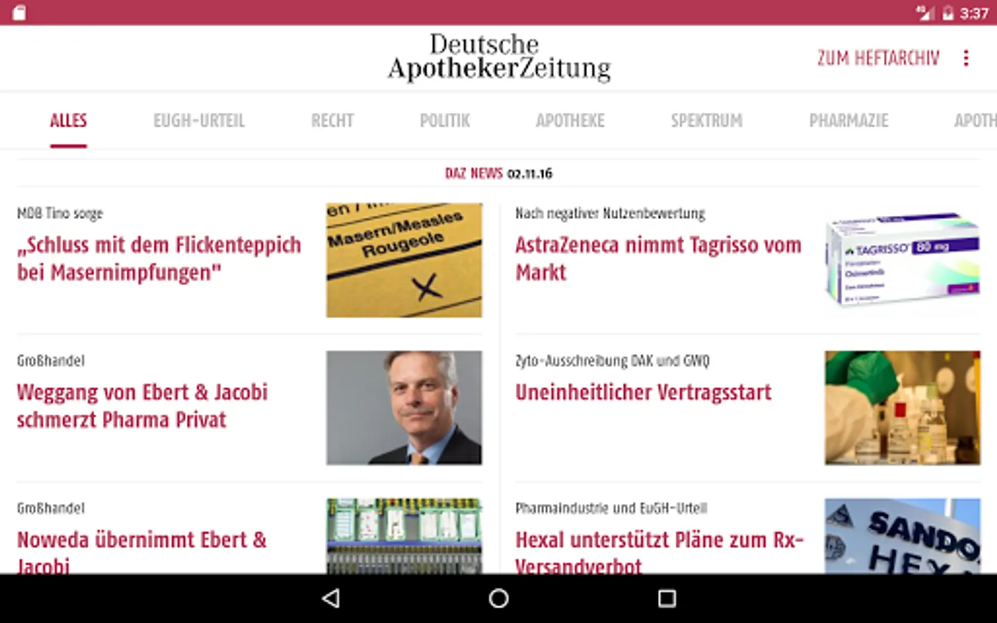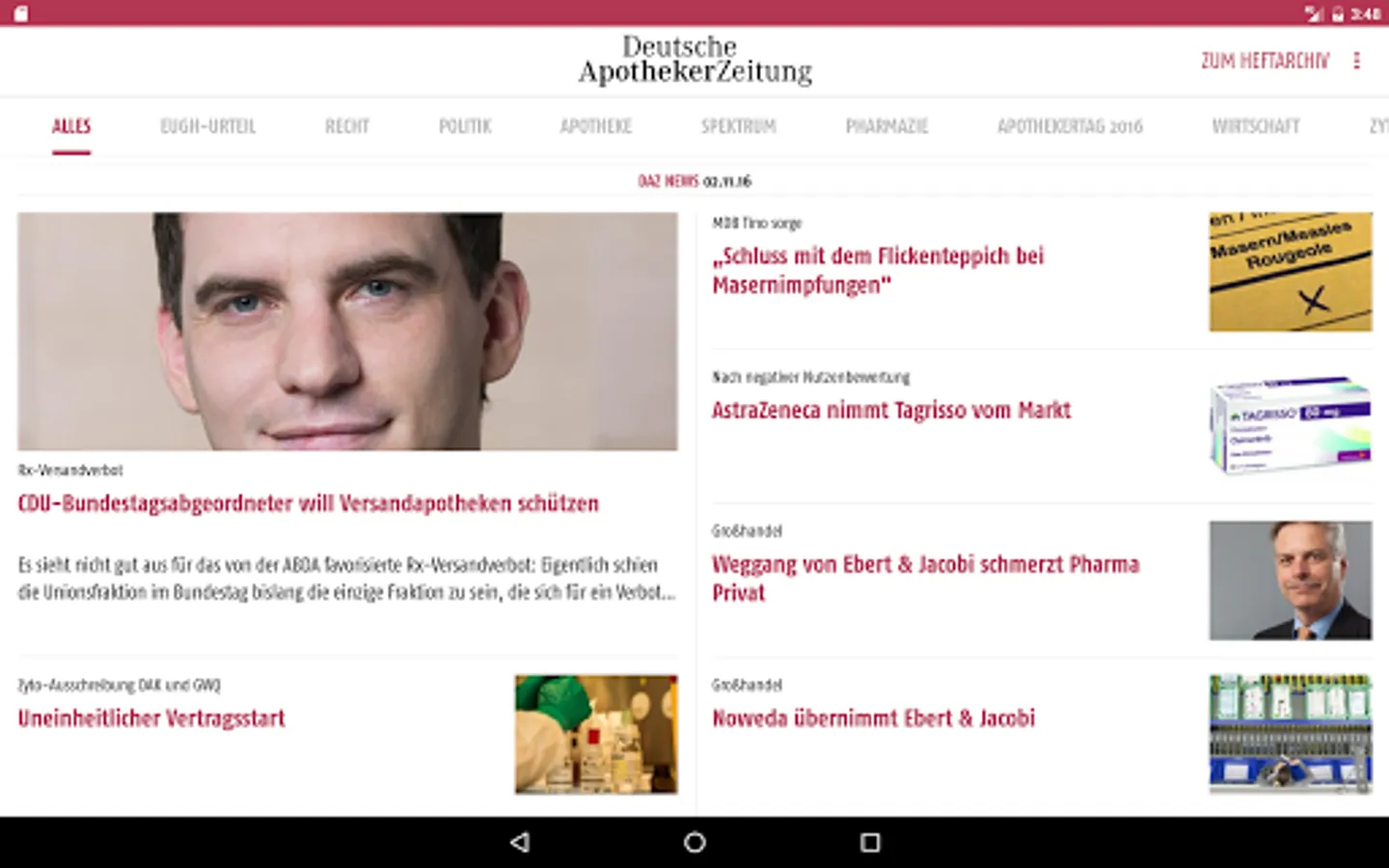 The app Deutsche Apotheker Zeitung constantly provides the latest releases from the pharmacy practice, health policy and pharmacy. To keep the pharmacy industry in mind, clear and compact.