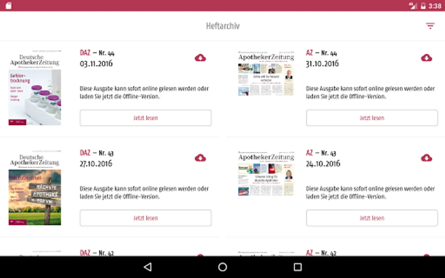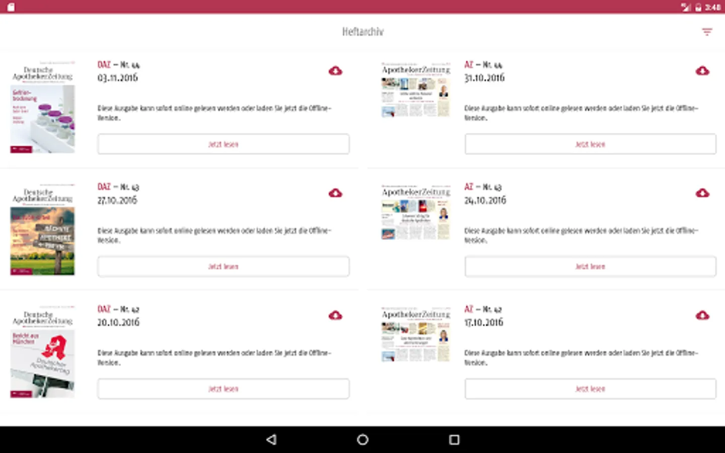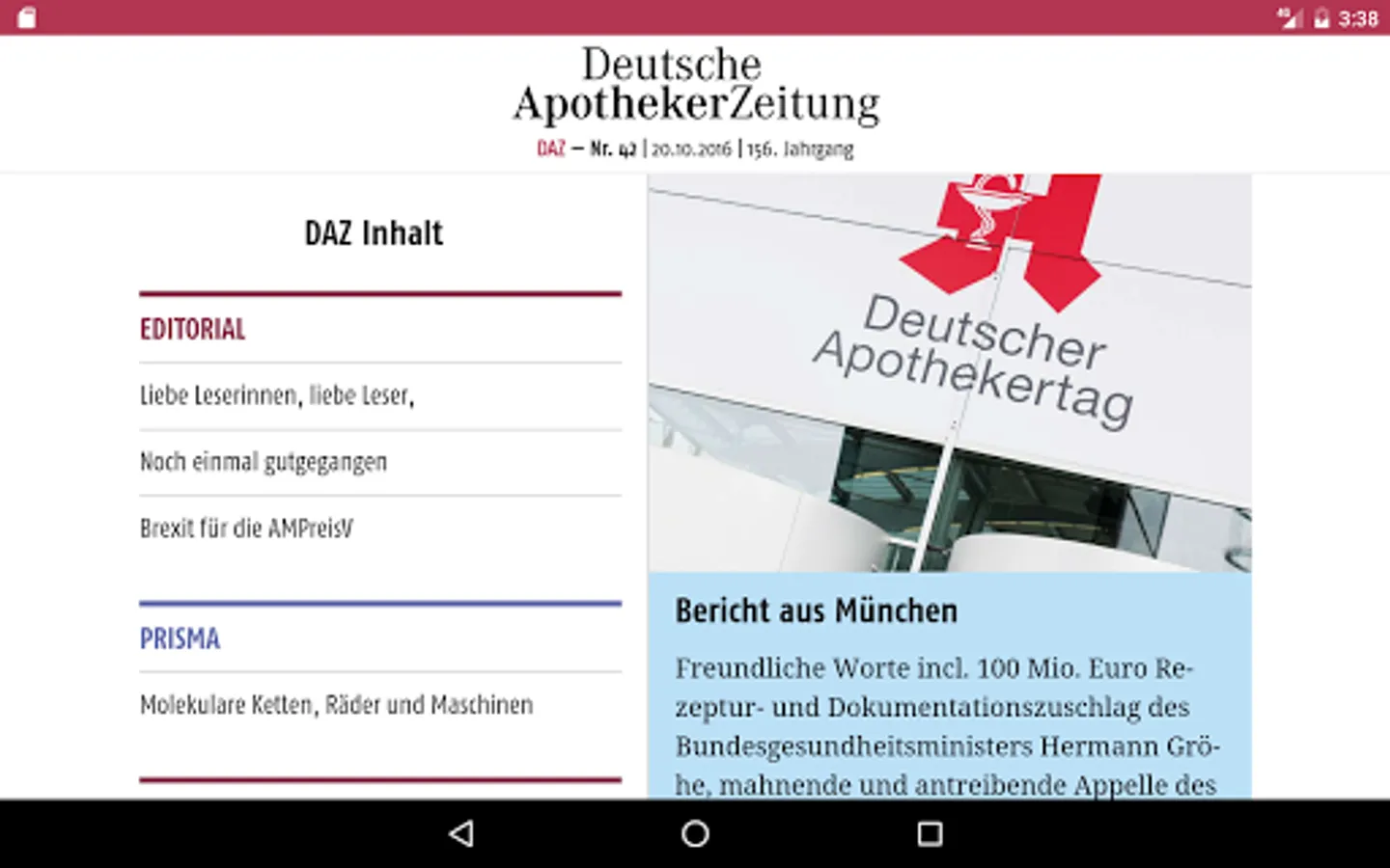 The app Deutsche Apotheker Zeitung constantly provides the latest releases from the pharmacy practice, health policy and pharmacy. To keep the pharmacy industry in mind, clear and compact.