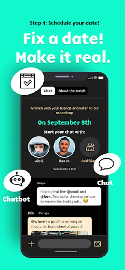 - The app will give you a gentle nudge to make sure you both follow through. You are welcome to invite other friends to join you.
