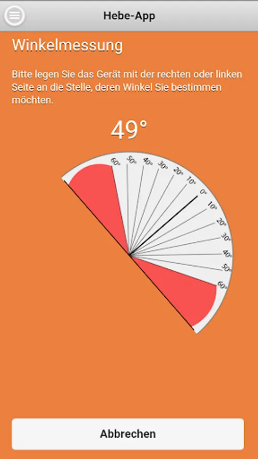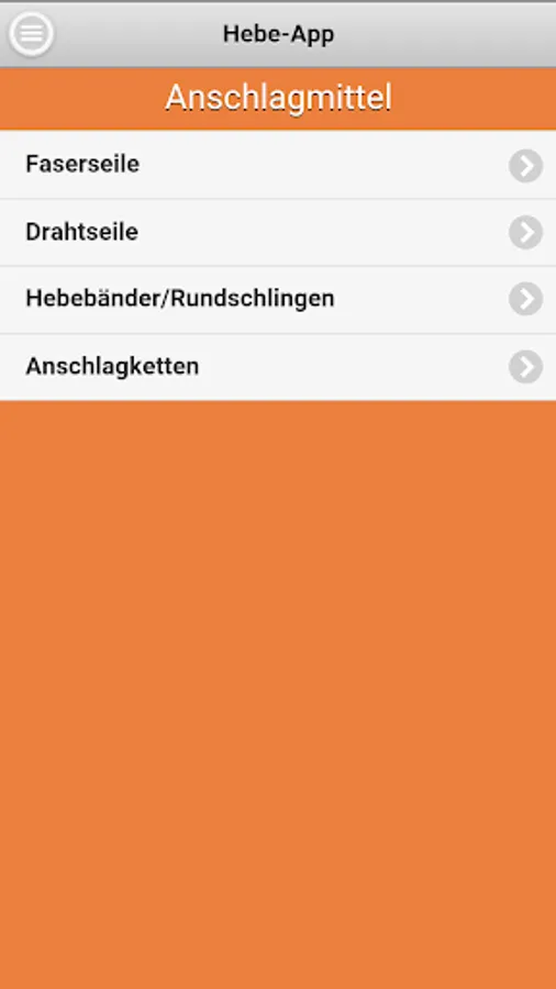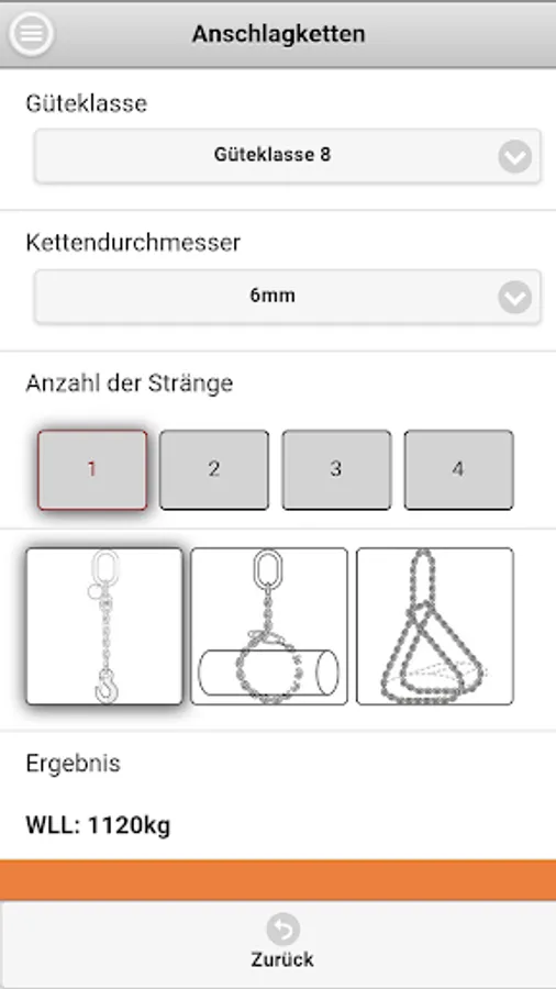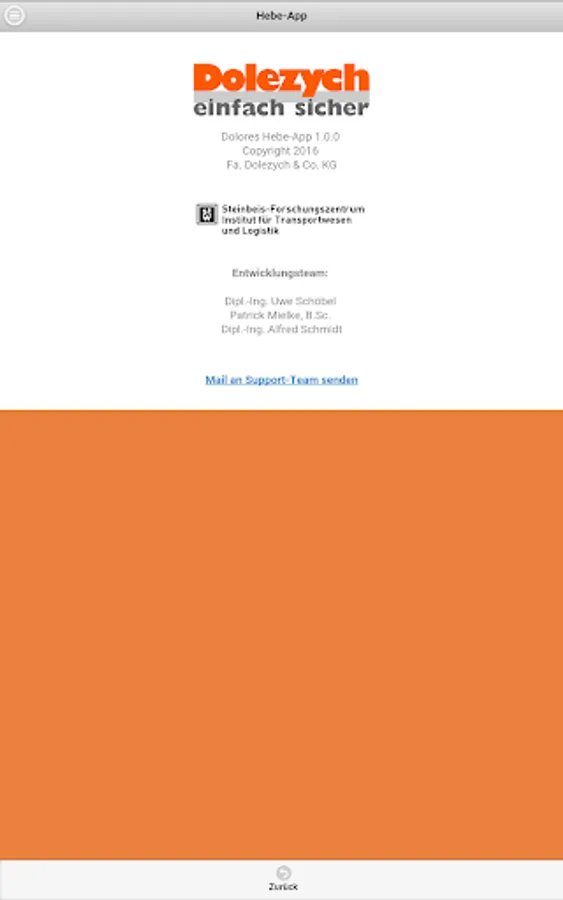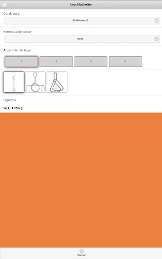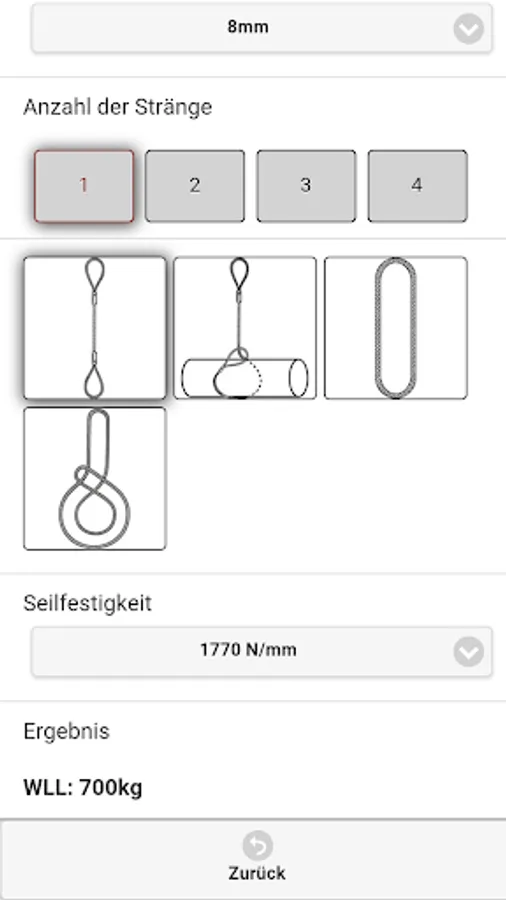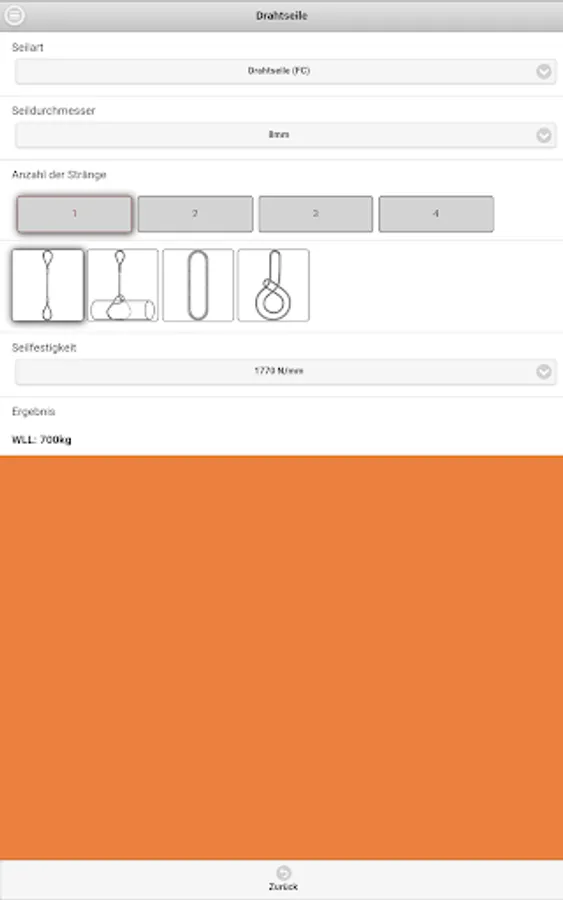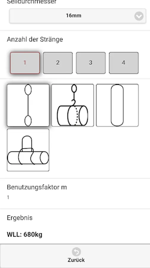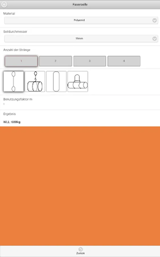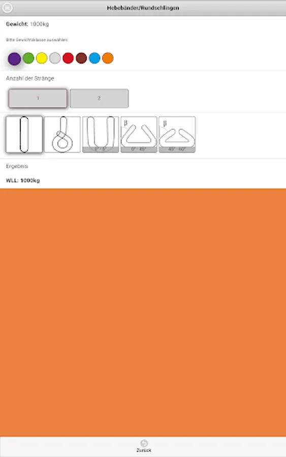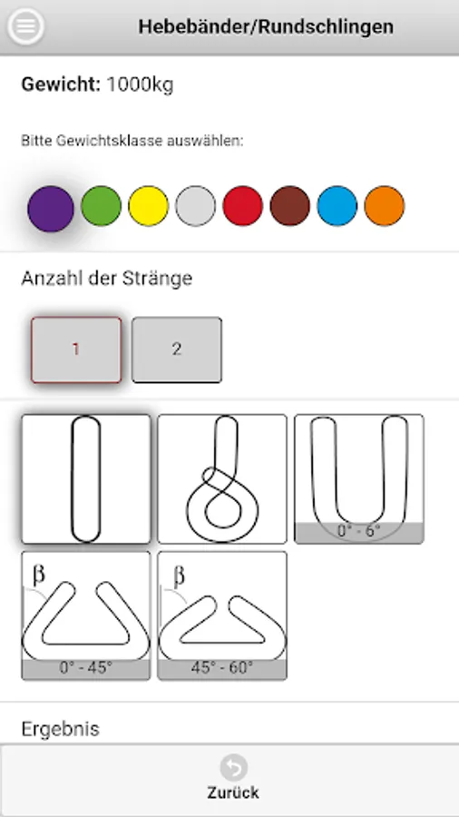 The Dolores lifting App Company Dolezych GmbH & Co. KG and the Steinbeis Research Center "Institute for Transportation and Logistics (ITL) Bremerhaven" allows the reading of the rated capacity (WLL - Working Load Limit) for the abutment means of the categories fiber ropes, wire ropes, lifting straps / slings and chain slings. In the app a protractor is integrated.