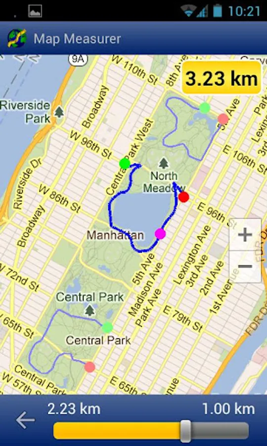 Map Measurer allows you to measure the length of your routes. A route can be drawn freely on the map like using a pencil.By sliding a point along the route you can also measure how far it is to the endpoints.
