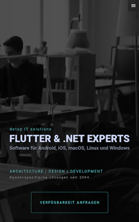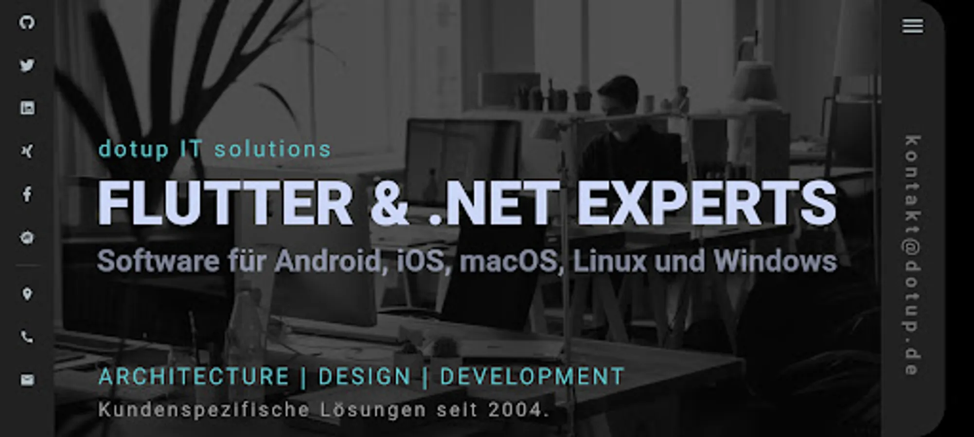 A replica from www.dotup.de in Flutter. Reactive, reposive and adaptive on all devices.