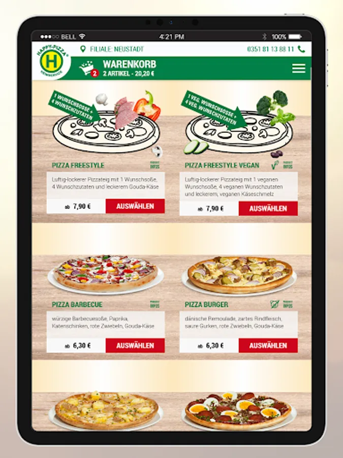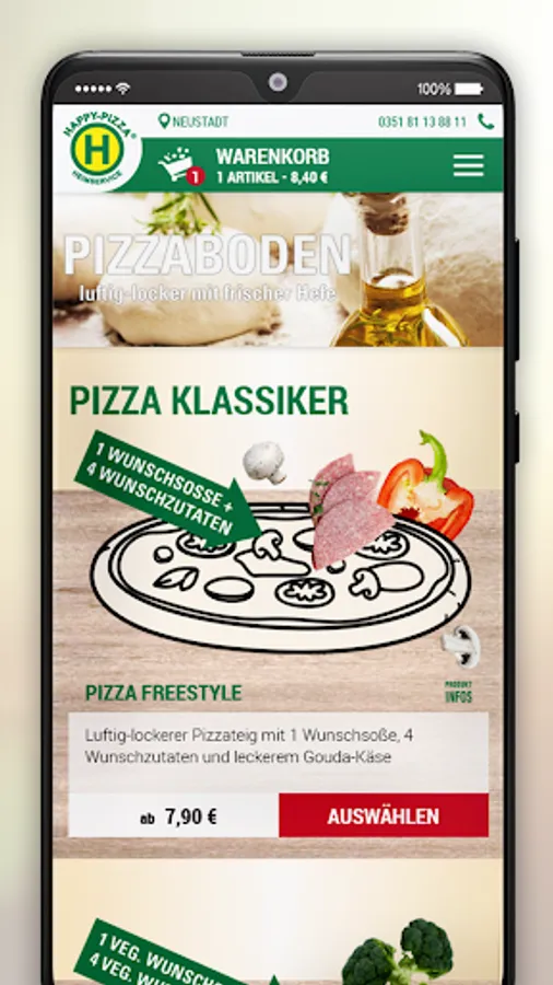 Happy pizza in your pocket: Order your favorite food with a flick of the wrist. Install the free APP now!