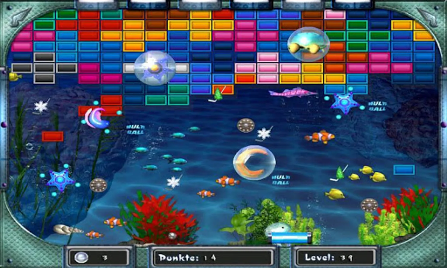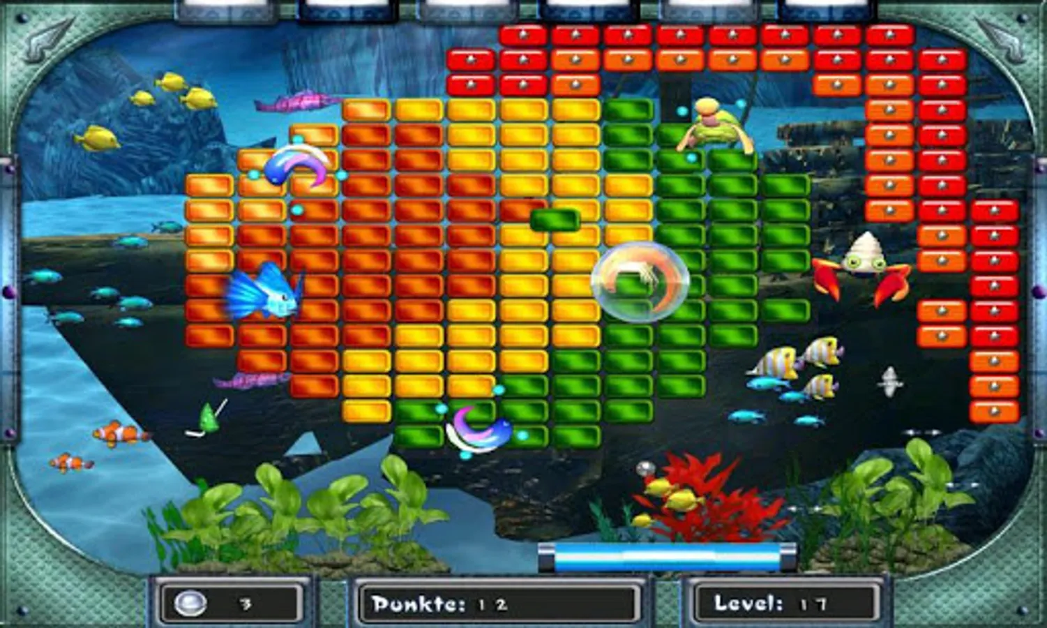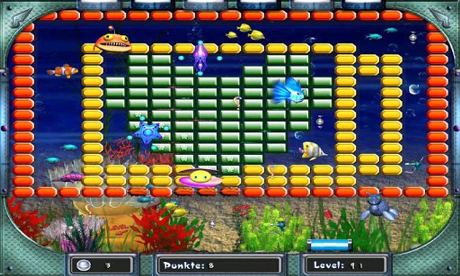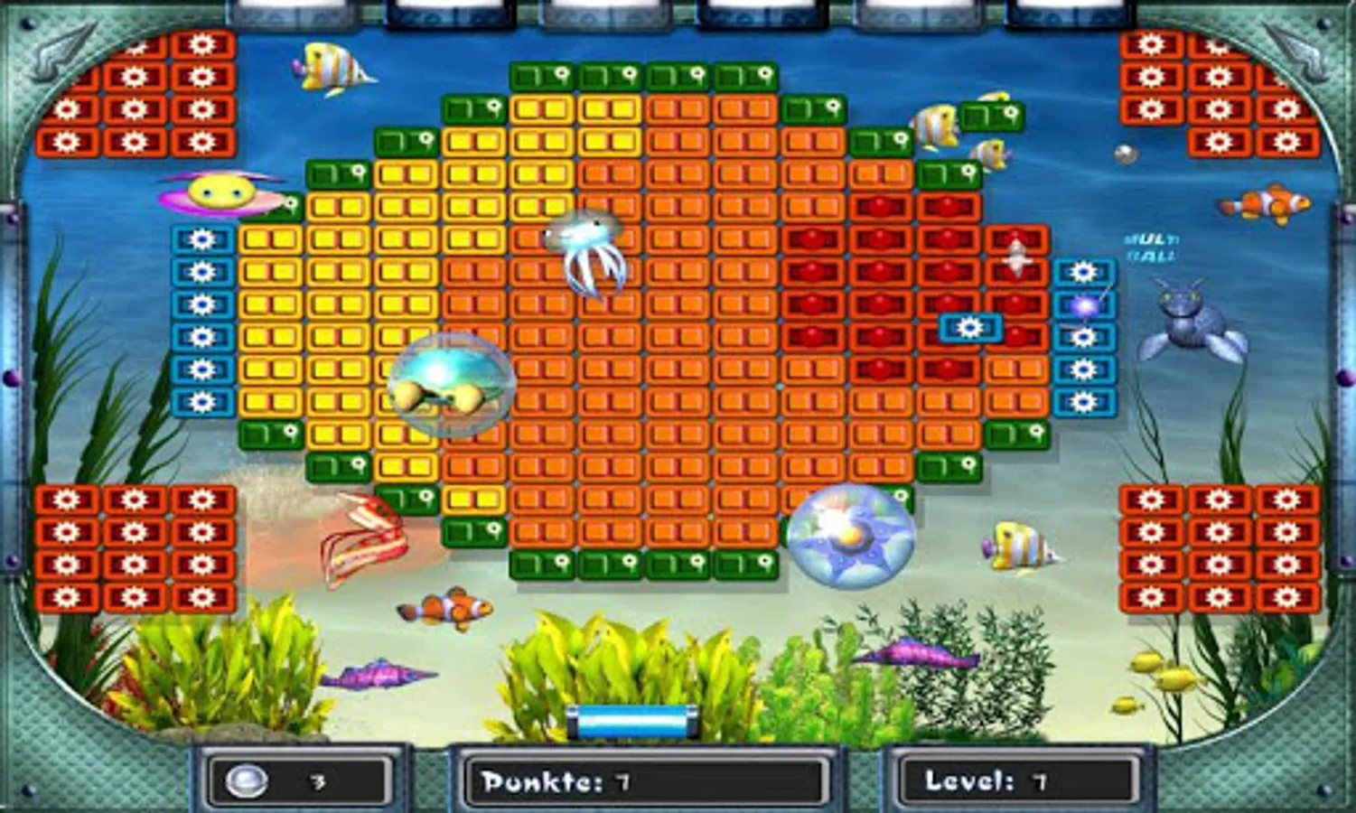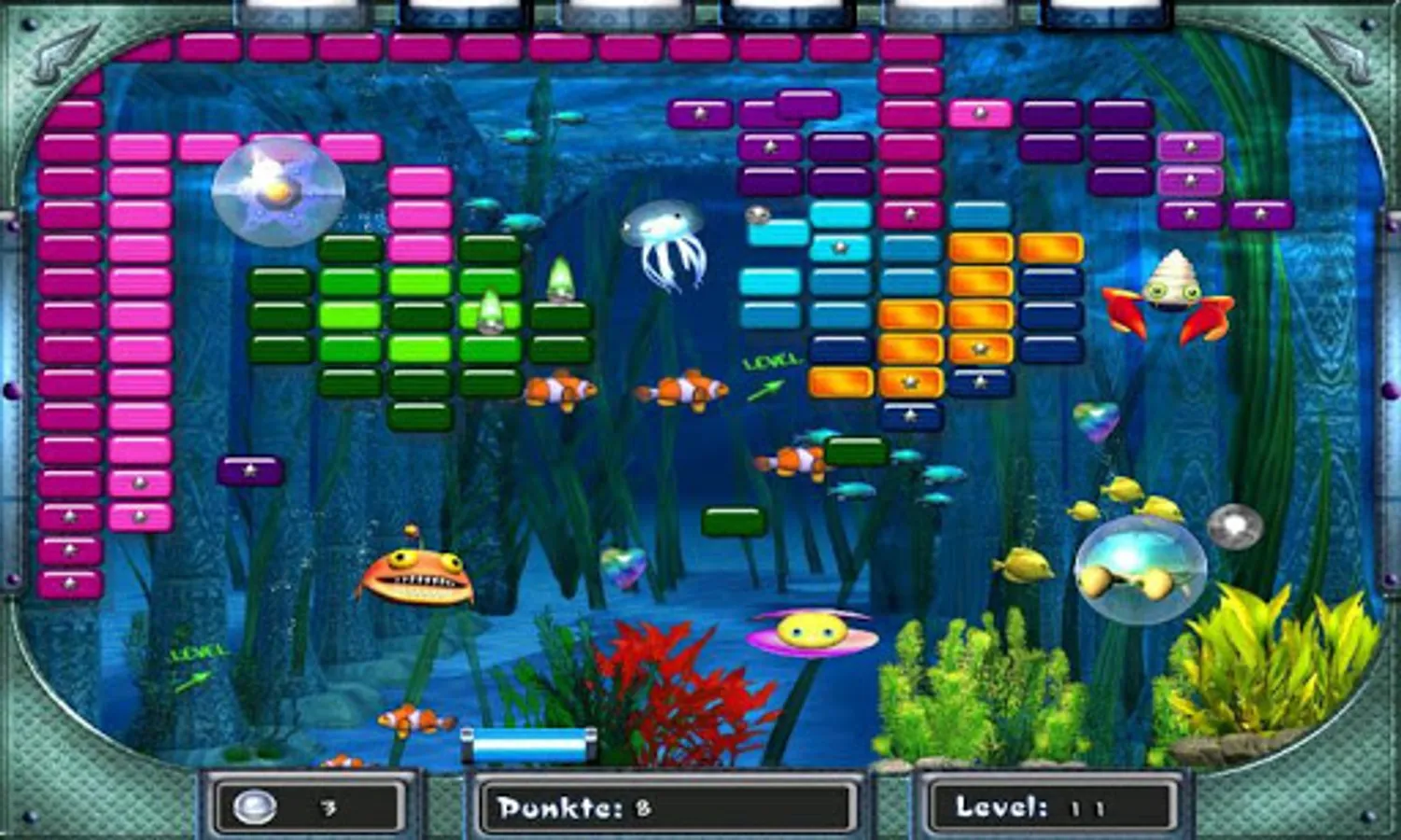 Before you many colorful levels are different tile layouts. The stones have z.T. different characteristics: they have to be one or more times hit by the ball, are invisible or even indestructible. Some stones even contain valuable tools that offer you an extra life, a larger clubs or other great bonuses. The content of some bricks on the other hand you should better not catch because you bonuses content makes the game tricky. Underwater monsters and mysterious submarines can be really dangerous even your racket!
