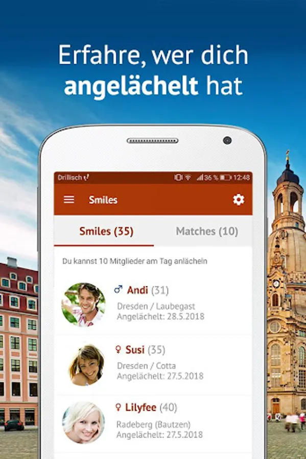 The Dresdner Singles is a dating app where you can search for your favorite person. Flirt easily with nice singles in your area, chat with them and arrange great dates or simply meet new people at exciting singles events.