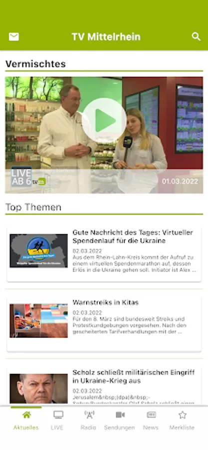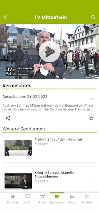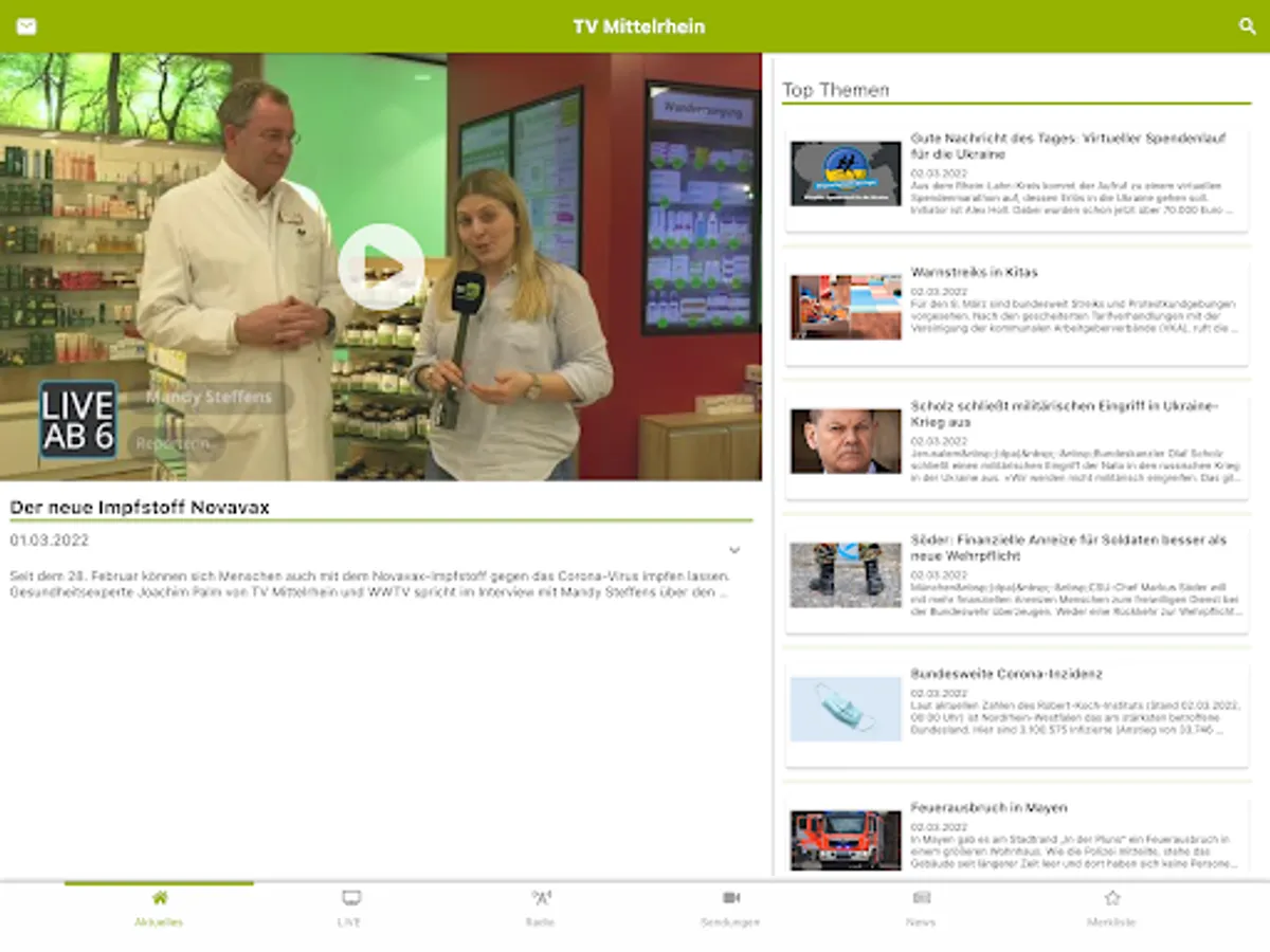With the tvm app, you can get live TV and the TV programs of the TV Mittelrhein on your smartphone or tablet.