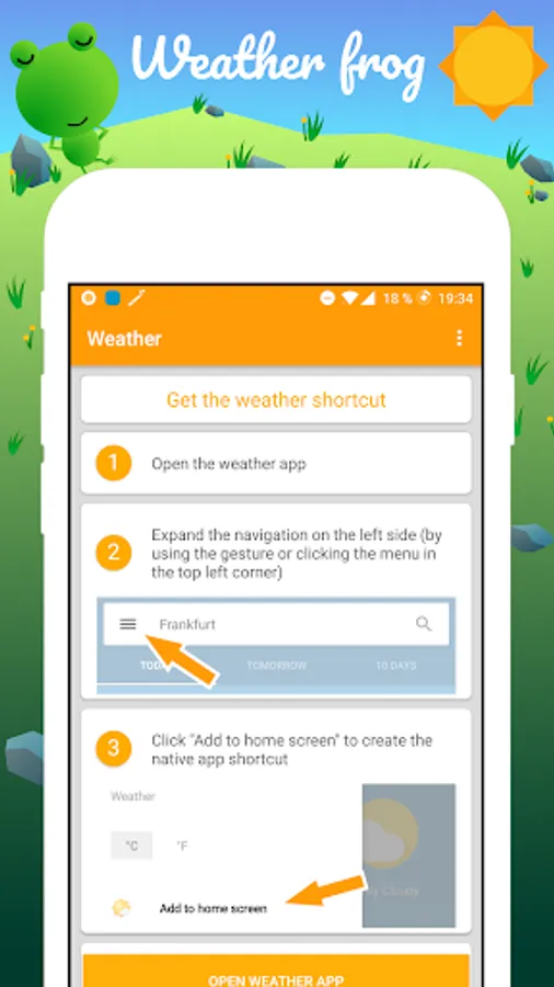 You can open the weather frog and create a shortcut on your home screen.