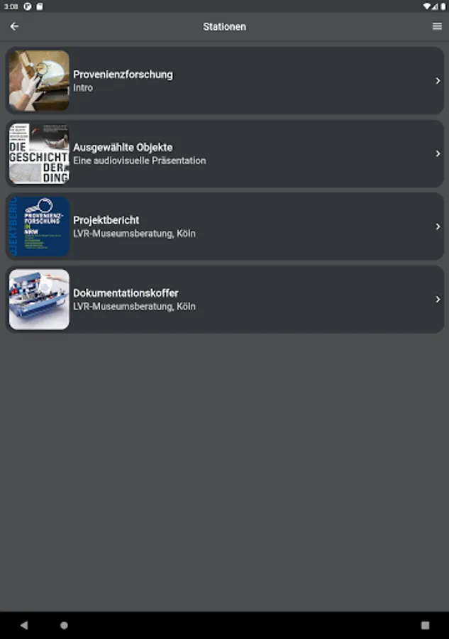 App for the exhibition "History of Things. The Origin of Objects in North Rhine-Westphalian Collections"