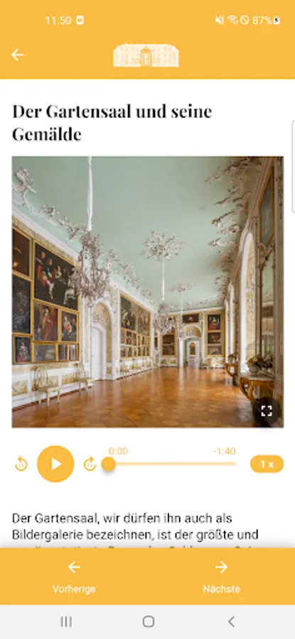 You will also experience the cabinets, which have been preserved in their historical furnishings and are connected to the gallery hall. We invite you to use the app to explore the castle's festival rooms.