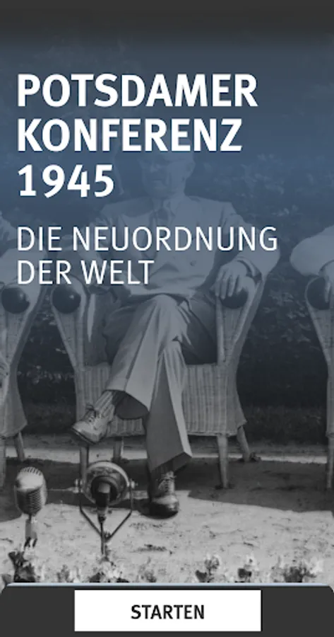 On the occasion of the 75th anniversary of the Potsdam Conference from June 23 to December 31, 2020, the Prussian Palaces and Gardens Foundation Berlin-Brandenburg (SPSG) is showing a special exhibition in Cecilienhof Palace. At the authentic location, visitors experience a multimedia journey through time to the fateful days of summer 1945. A factual and ideology-free presentation of the geopolitical decisions contrasts with emotionally moving voices of those affected. Well-known historical figures such as Churchill, Stalin and Truman are confronted with the “nameless” of history - among them victims of atomic bombs and displaced persons. The special exhibition enables a multi-perspective view of a piece of world history. For the first time, the exhibition also includes the famous garden terrace as the location for the press photos of the “Big Three” in the wicker armchairs.