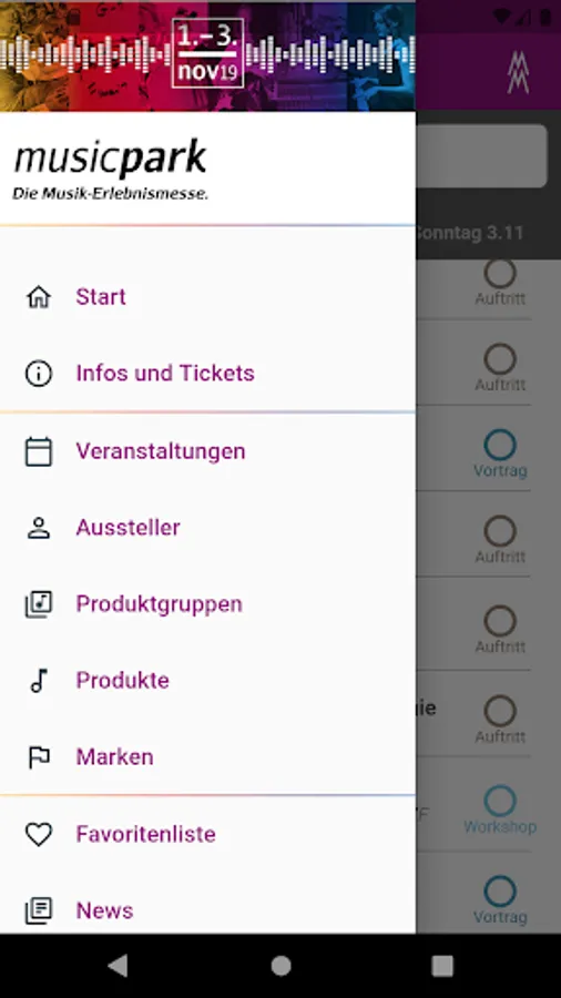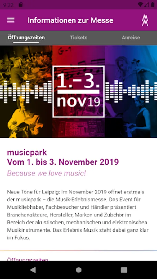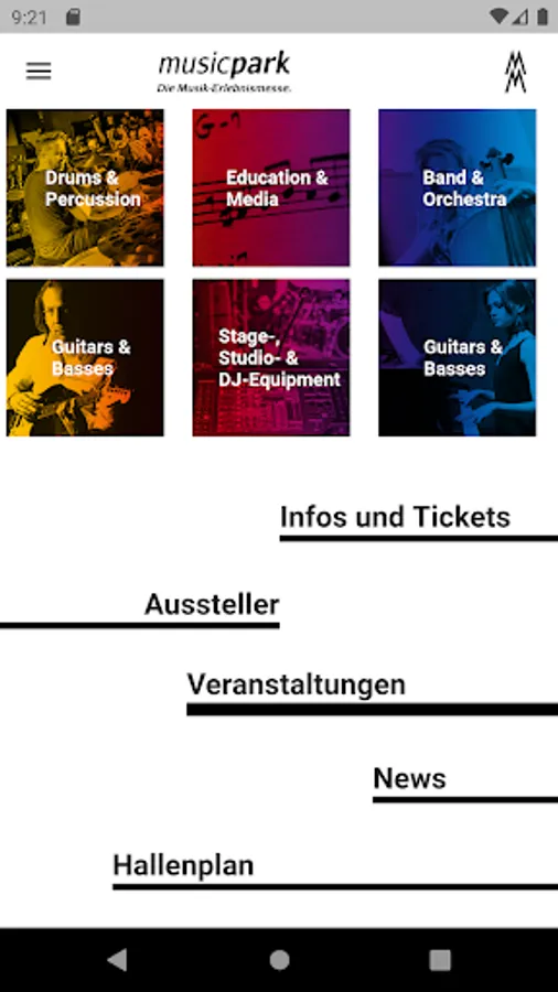 The musicpark is designed as a separate, musical "theme world" with a park-like character. You will take a walk and discover in your own way the whole world of musical instruments. You can watch, listen, touch and try out or stay in exchange as you please. In addition to the six exhibition areas (show floors), the innovative exhibition concept includes the unique sound booths "sweatbloodtears", various stages, an education and training area, PlayZones to try out and the market. They all have one goal: to make the experience of music tangible for all visitors and to fascinate them for musical instruments and making music themselves. Welcome!