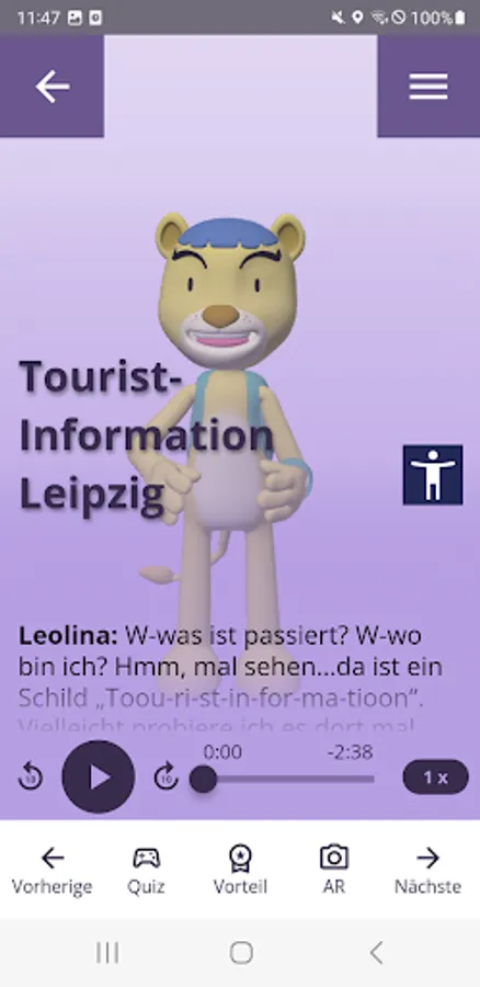 We have developed a tour with augmented reality elements especially for families with children. Children can get to know the city center of Leipzig in a playful way and accompany the lioness Leolina on her tour of Leipzig and thus learn about the history of the city in a new and entertaining way.