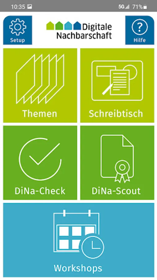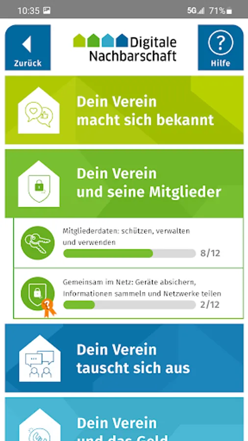 The various themed worlds can always be browsed on your smartphone or tablet, always ready to hand. Your work is structured with the help of an integrated desk. So you always have an overview. Your progress is recorded so that you can continue exactly where you left off. Knowledge training offers the opportunity to test your knowledge regularly. Do you feel ready for the Scout test? Then certify yourself in an online test as a scout of the digital neighborhood or get the DiNa-Check for your club as an award for successful security measures.