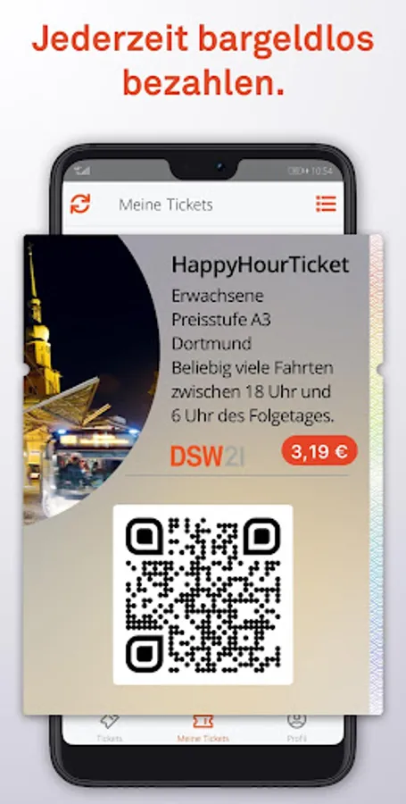Download the DOtick App from the App Store. Register with your e-mail address and a password before making your first purchase and select the ticket that suits you.