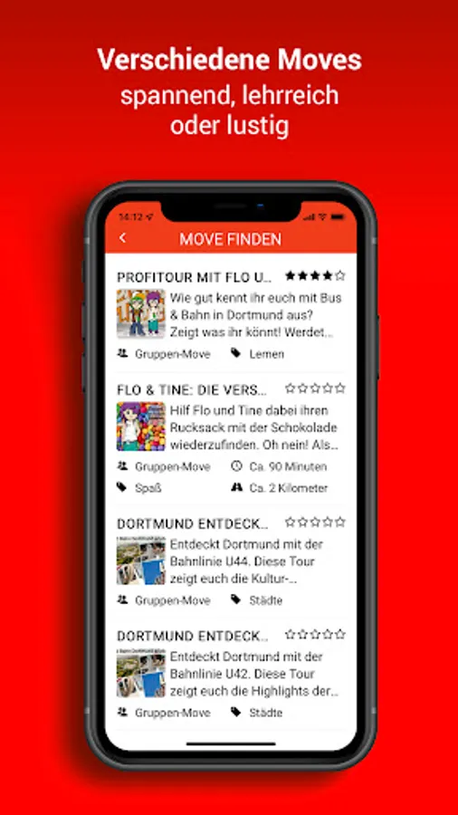 Use the GPS function of your smartphone to discover Dortmund and the surrounding area with our Moves. Find exciting places, solve tricky puzzles and explore your homeland with friends and family.