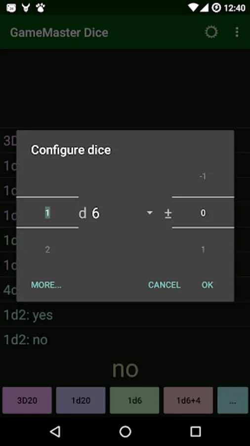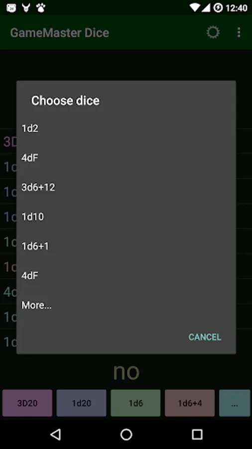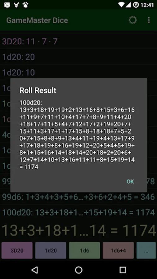 GameMaster Dice is a dice rolling application with a special focus on the 3D20 role playing game (RPG) system. It provides a clean interface highlighting what a game master (or the player) needs.