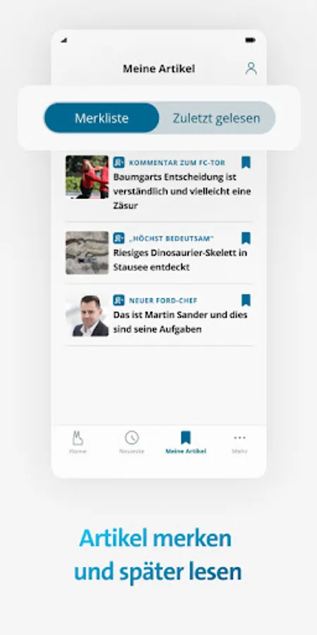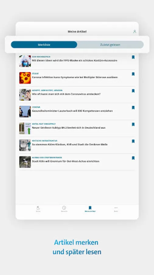 • "Last read": All of the news you have recently read are saved in a list - so you can always refer to them quickly