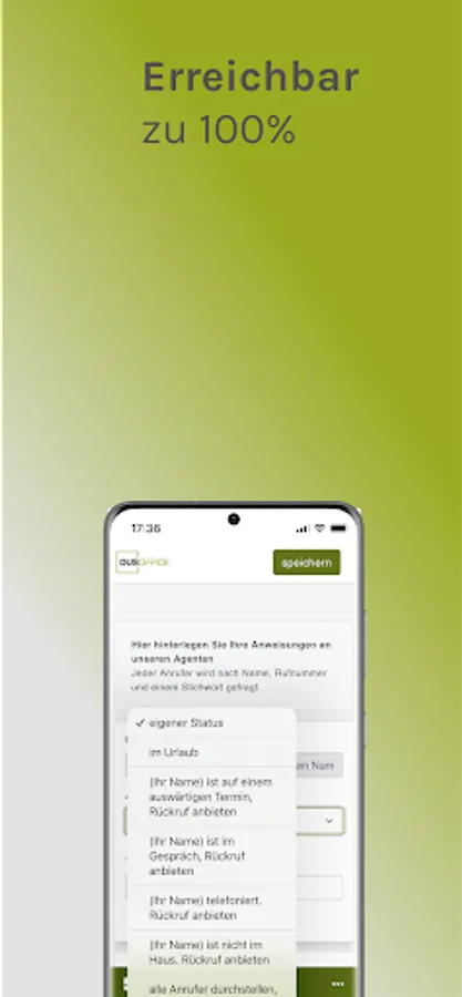 - Store your status with a calendar function so that we already know today how you can be reached next week