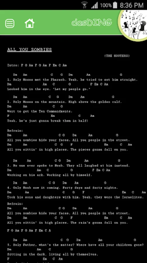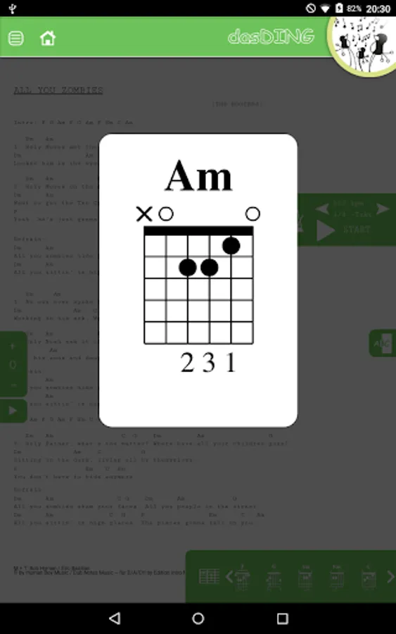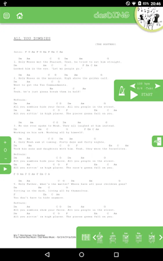 A must for all campfire guitarists and those who want to be there. The chords used can be displayed in each song without changing the view. Also helps a metronome for rhythm and an auto-scroll function by this eliminates an annoying scrolling or leaves.