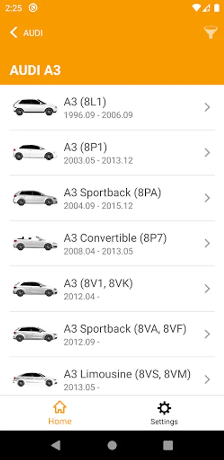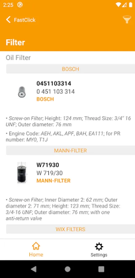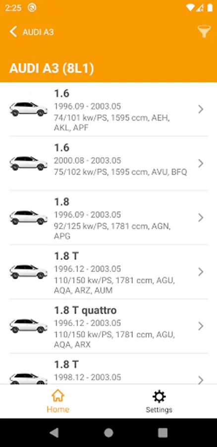• Identify the right spare part using several search methods: article number, OE number, EAN code, by brand, model, VIN number, engine code, ...