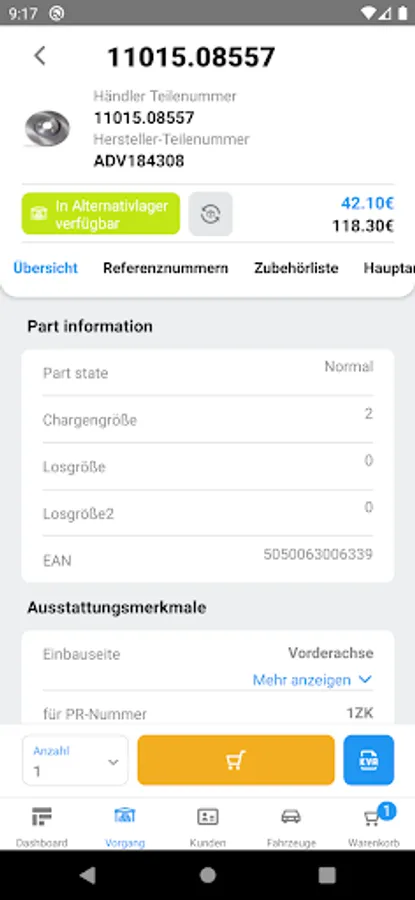 All relevant information, such as technical properties or product images, is displayed for each item in the app. You will also find the linked OE numbers for the articles and information on which vehicles these spare parts are installed in. The application is suitable for use in workshops, trade and industry. Users can quickly and specifically search for a vehicle part or a vehicle by entering a number and determine in which vehicles the spare part fits or which parts are required for the vehicle. The search is also possible via a scan function of the EAN code. Possible search criteria for quick part identification are any number, the item number, an OE number, the usage number or the comparison number. An existing TM NEXT license number and a password are required to use the app's full functionality. For more information or to activate the licenses, call +49 4532 201 401 or info@dvse.de.